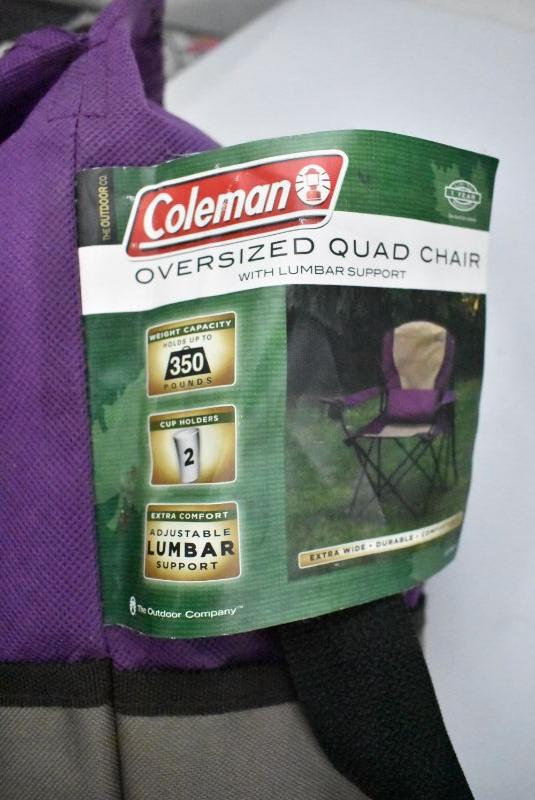 Coleman Oversized Quad Chair, with Bag, Purple & Tan - No Lumbar Support