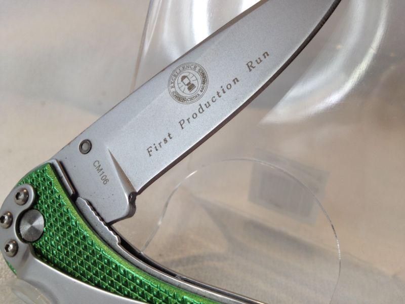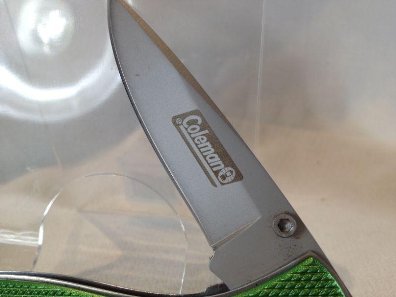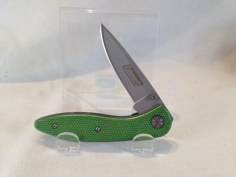 This lot is a nifty green-handled Coleman Pocket Knife # CM 106. Marked First Production Run - Excellence. Appears unused and is in very good condition. Useful and/or collectible.