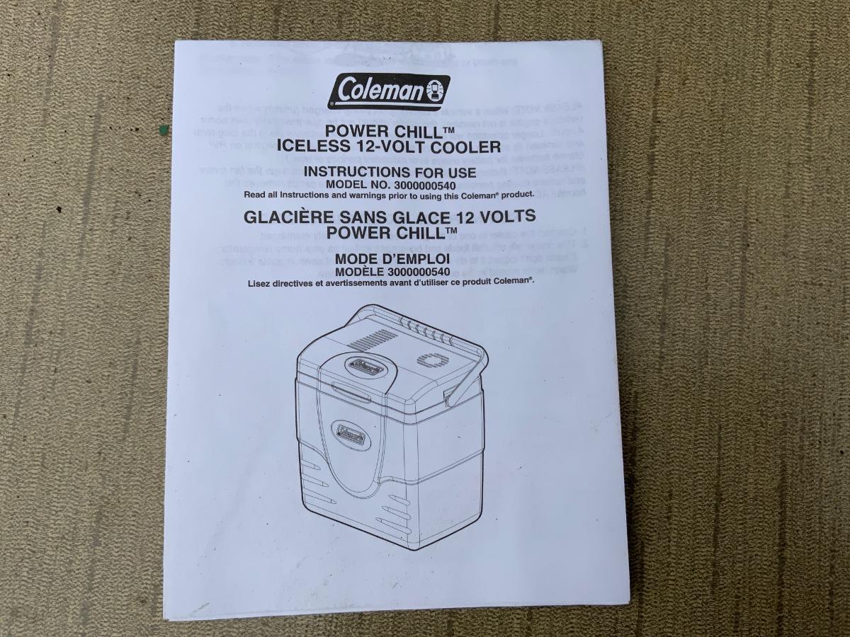 Coleman Power Chill Iceless 12-Volt Cooler. Appears to have never been used, however this item has not been tested.