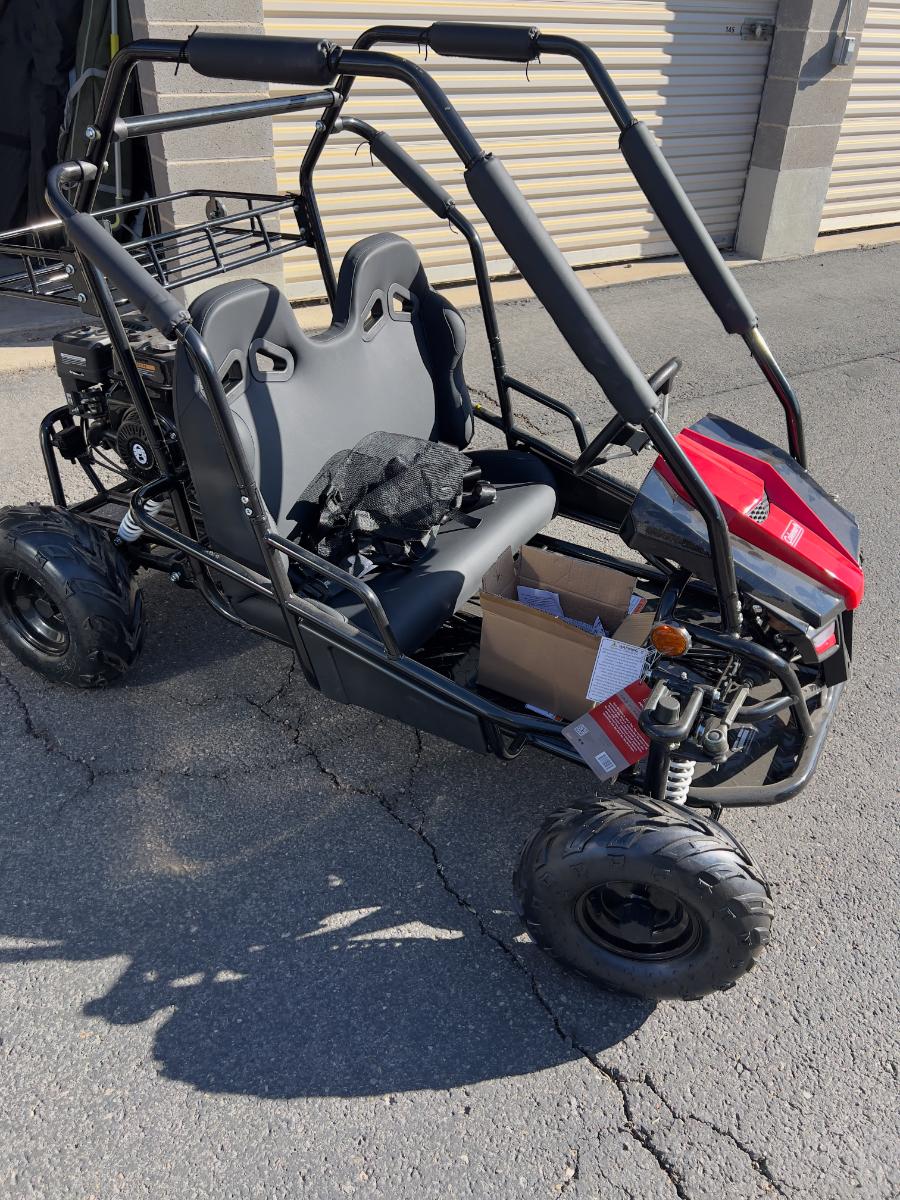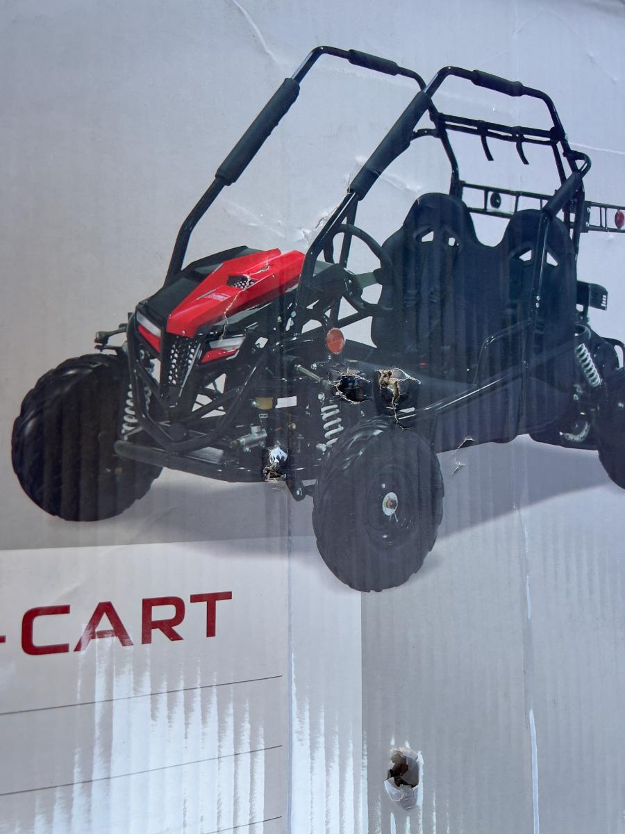 Cart is new and assembled, never had fuel in in ready to go once the seat belts are attached. Complete. Weighs about 270 pounds will need help to load.