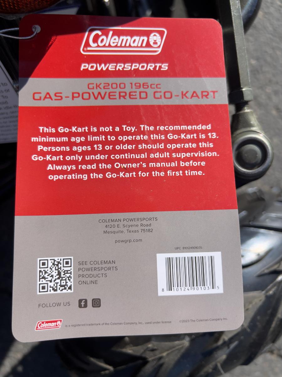 Coleman Power Sports GK200 Gas Powered Go-Cart