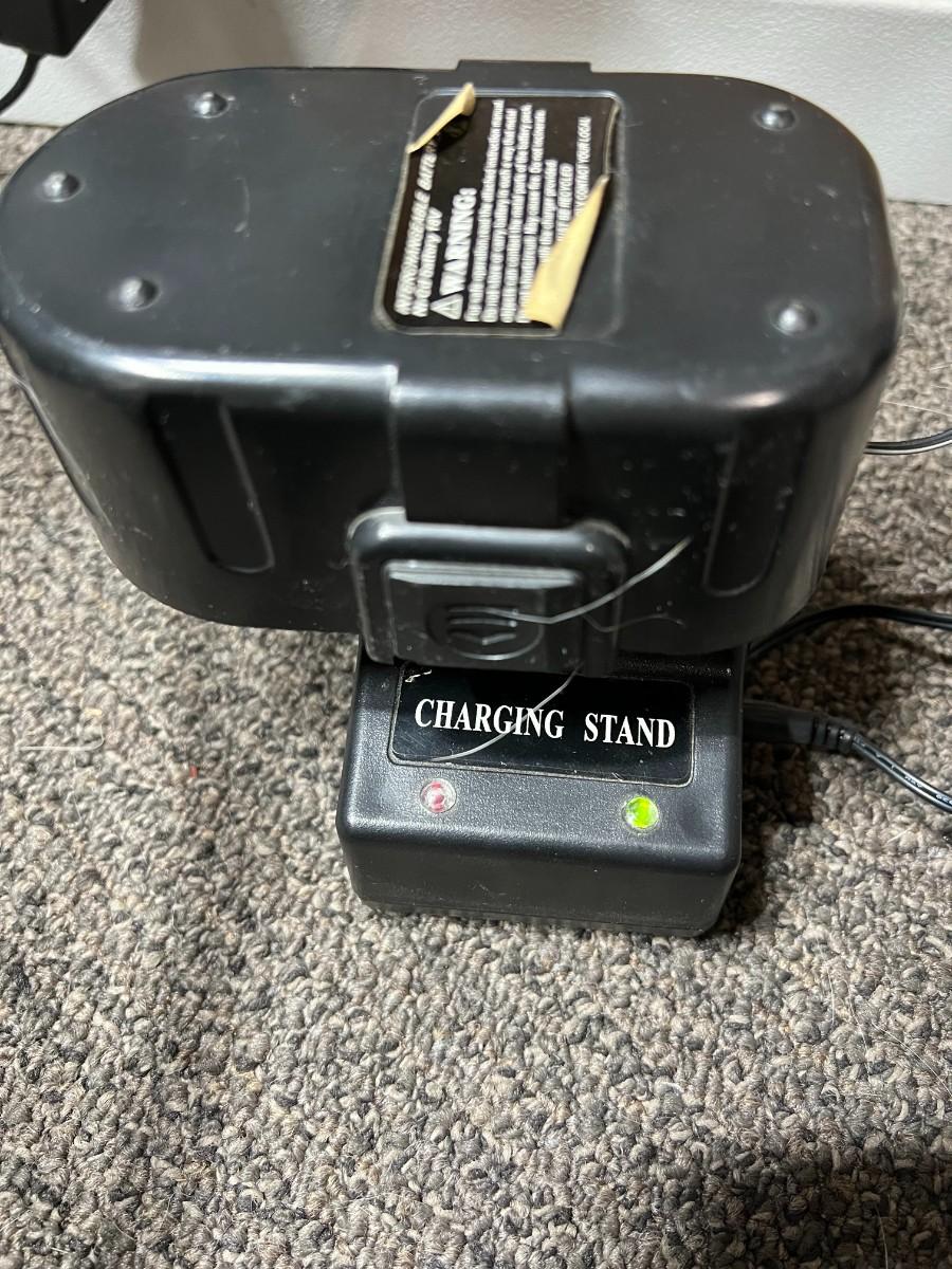Coleman Powermate Electric Rechargeable Battery Power Drill with Case & Instructions, there is no significant damage to power drill and is in good useable condition. The drill works and the battery charges successfully, check pictures for more details and for sizing,