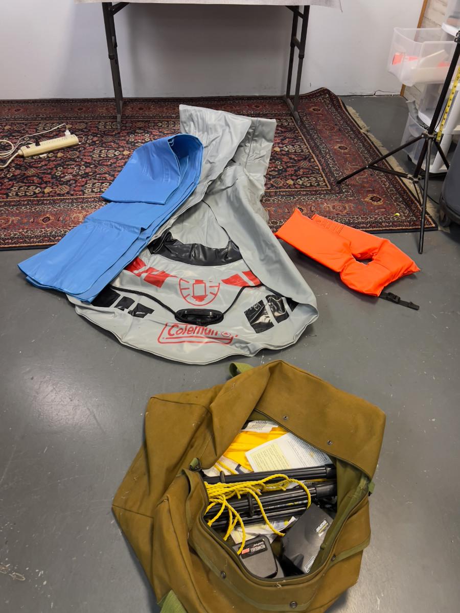 Coleman Raft and an Air Mattress, Paddles, Life Vest,  Pump