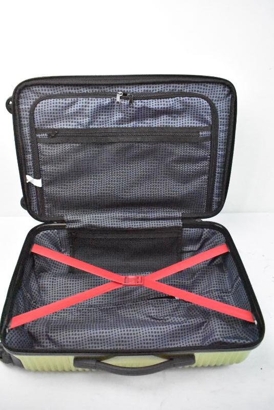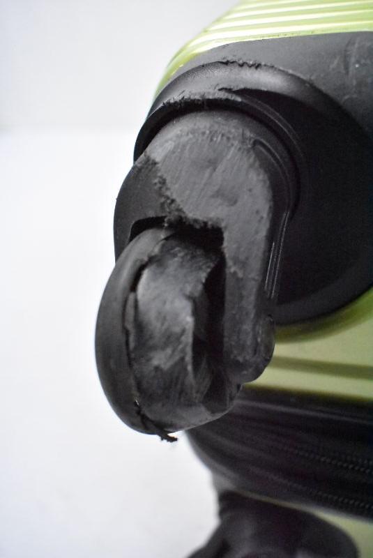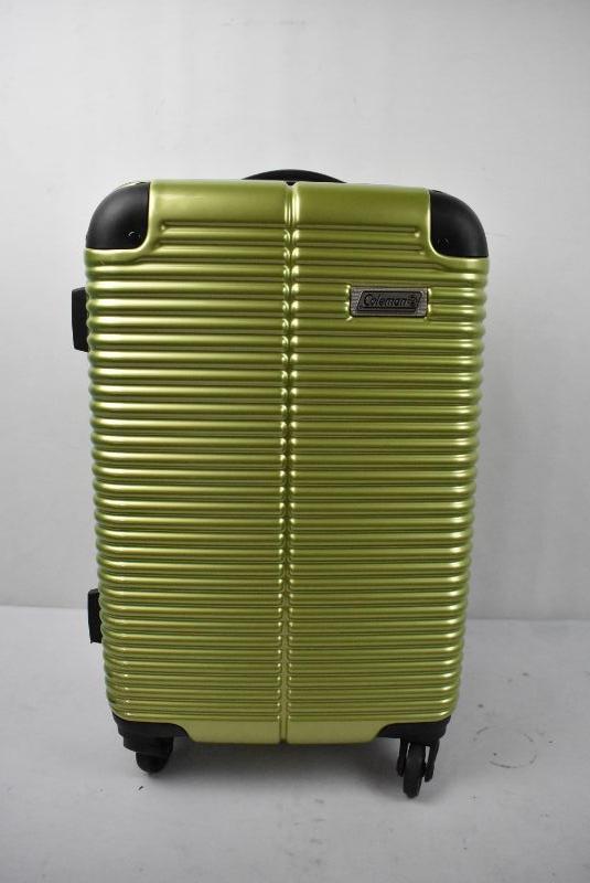 Coleman Rolling Suitcase, Carry-On Size, Metallic Lime Color, Expandable - Damage to 1 Wheel and Bottom Near Wheels