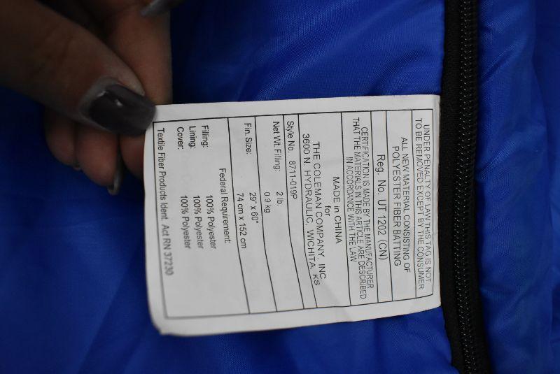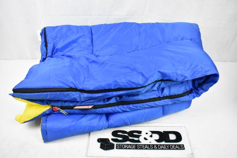 Coleman Sleeping Bag, Blue & Yellow, 2lb, 29"x60" No ties/Bag. Clean