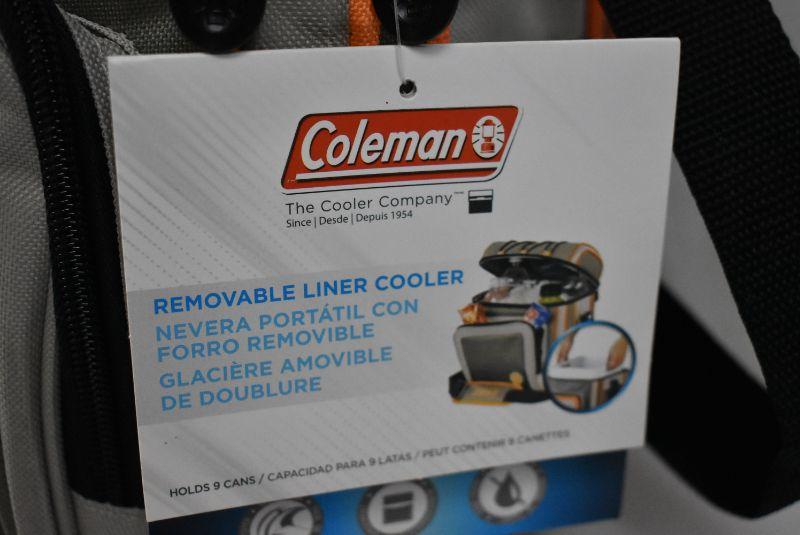 Coleman Soft Side Cooler, Holds 9 cans, Green & Orange, Removable Liner - New