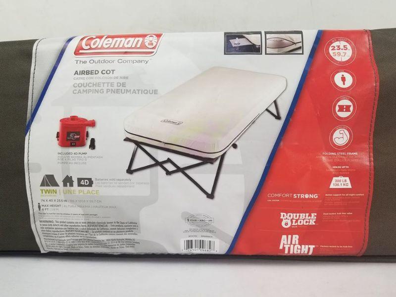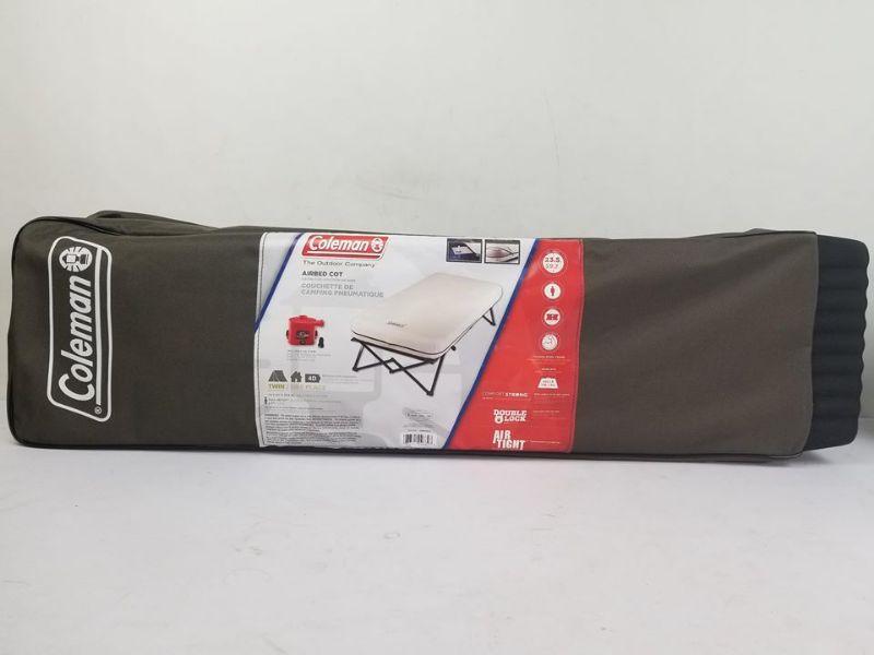 Coleman Twin Airbed Folding Cot with Side Table and 4D Battery Pump - New
