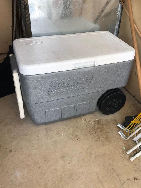 Coleman Wagon cooler. **Please read Terms and Conditions before placing a bid. Pick up is Thursday, August 15, 2019 from 4pm to 7pm or Sunday, August 18 from 11am-2pm in Mullica Hill. All sales are final. All sales are as is, where is. Please review all photos. Any props included in photos are not included in listing. All measurements are approximate.