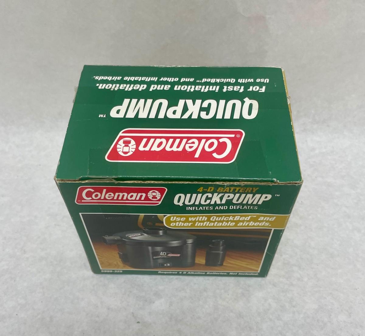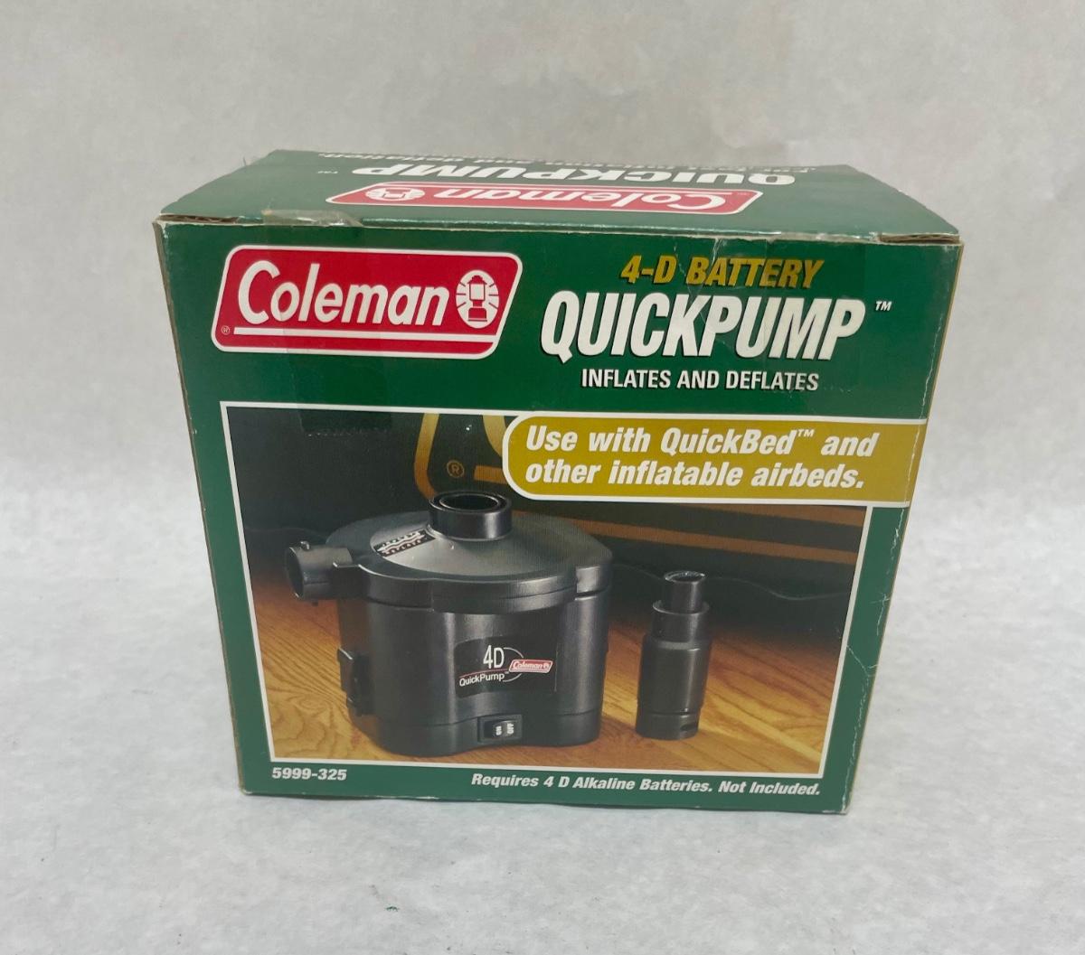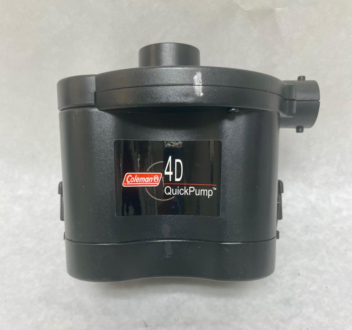 Uses 4 "D" batteries. Tested, works perfectly. In original box with inflator adapter and instruction sheet.