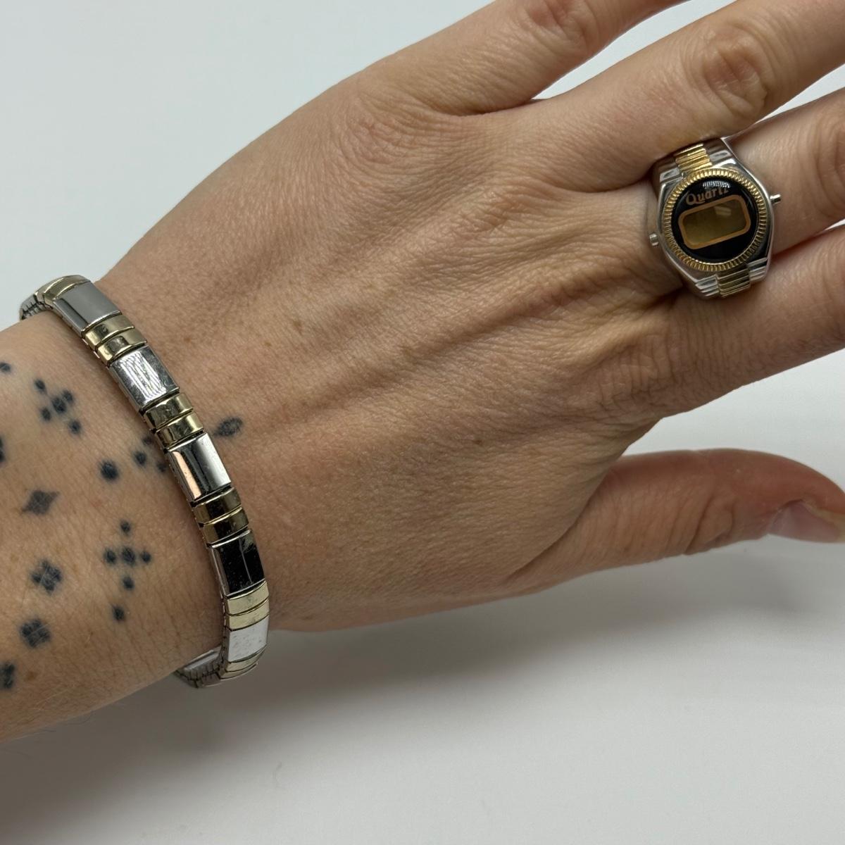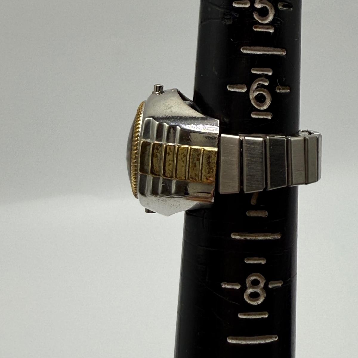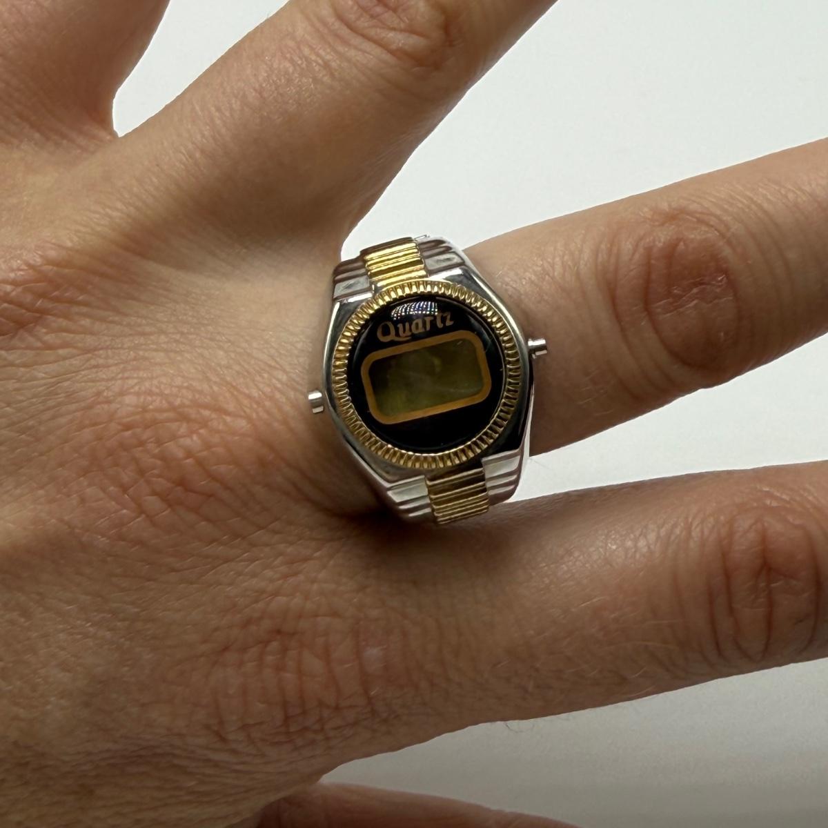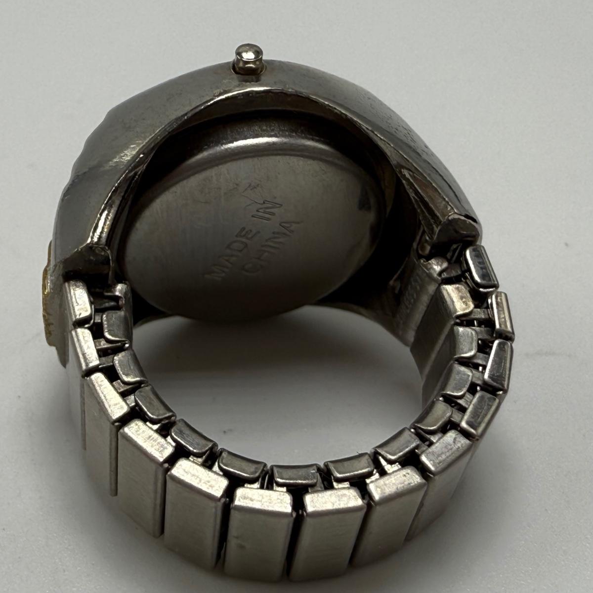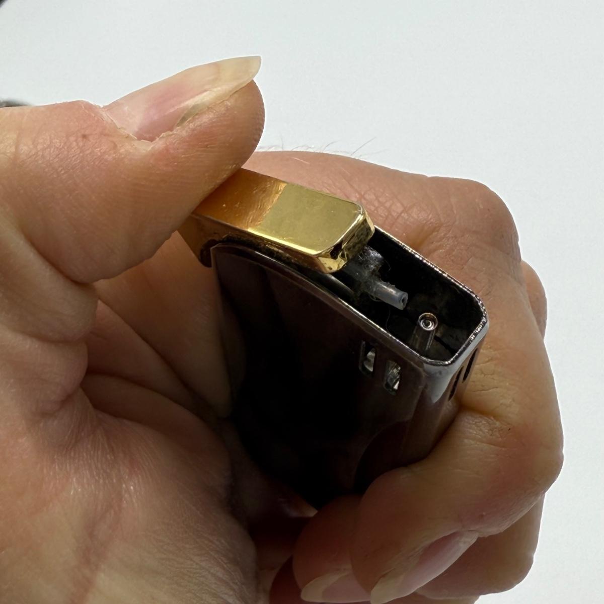 This lot contains a vintage style refillable Colibri lighter, a quartz ring watch, a bracelet, and two Cross brand pens with one Cross mechanical pencil with a leather case. The lighter is 1” x 0.25” x 2.75". The ring watch is not currently functioning.