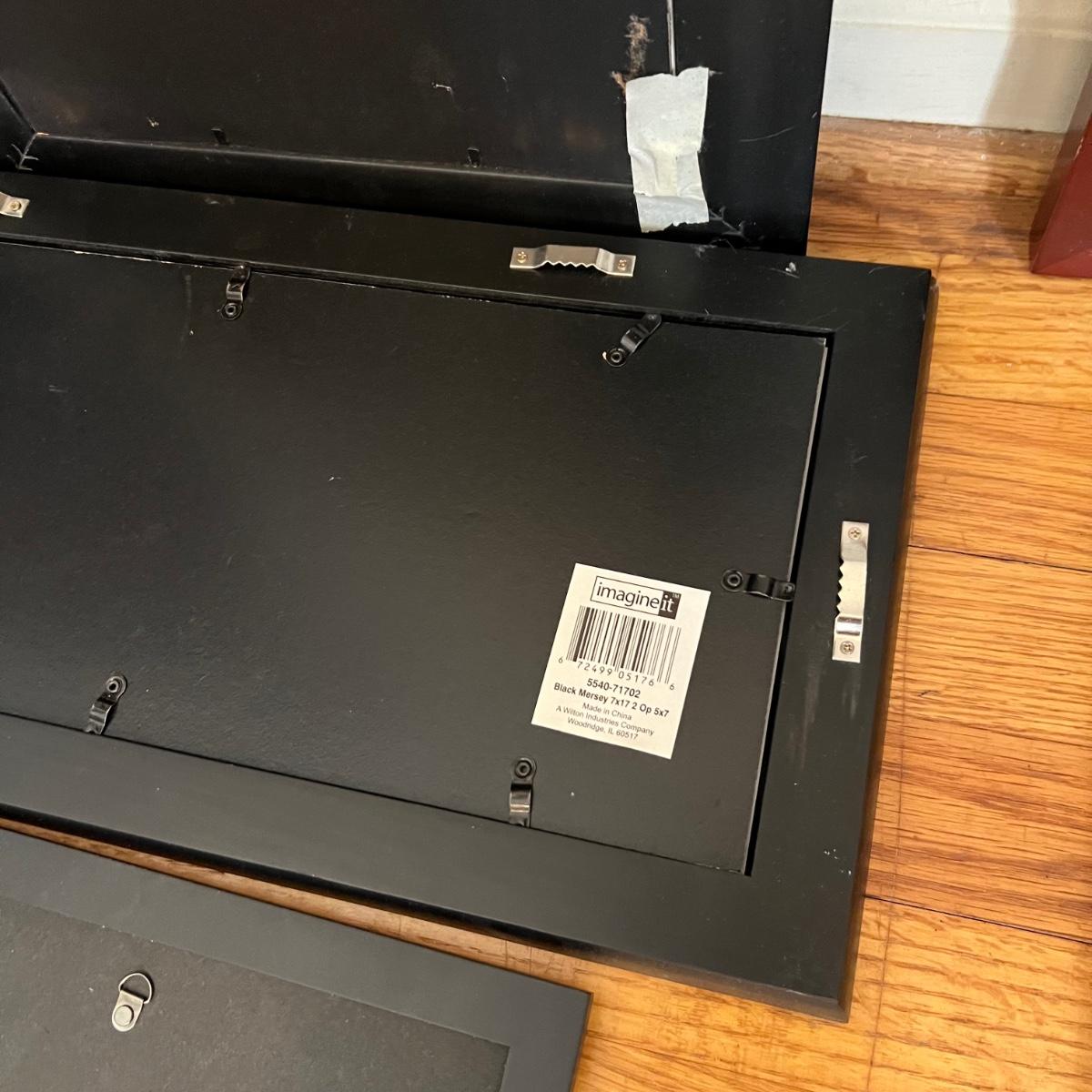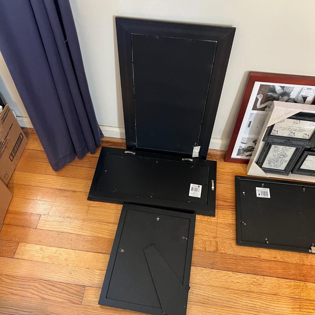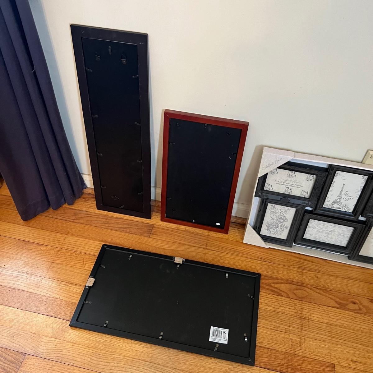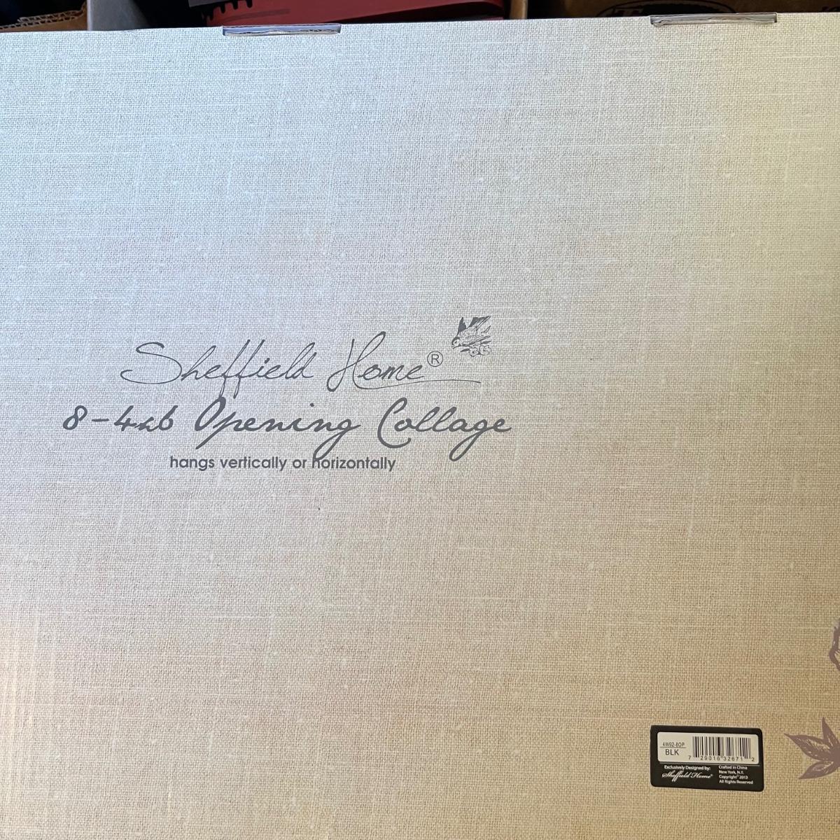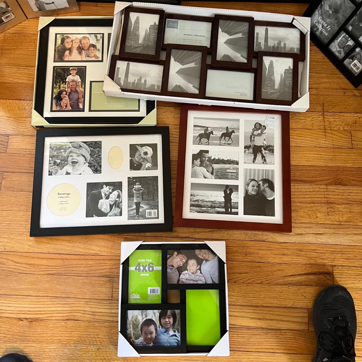 Ten plus collage style photo frames that are mainly a faux wood material. Many are brand new. One of the largest is the Sheffield Home which measures 26” x 15”H. Also includes a NIB photo tray.