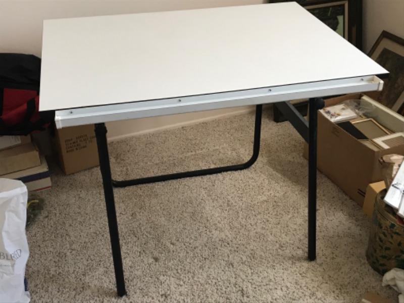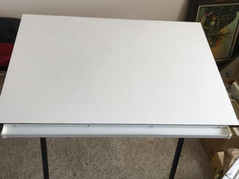 Nice work surface in great condition. Measures 42” x 30” and the attached metal pen tray adds 2” making it 42” x 32”.