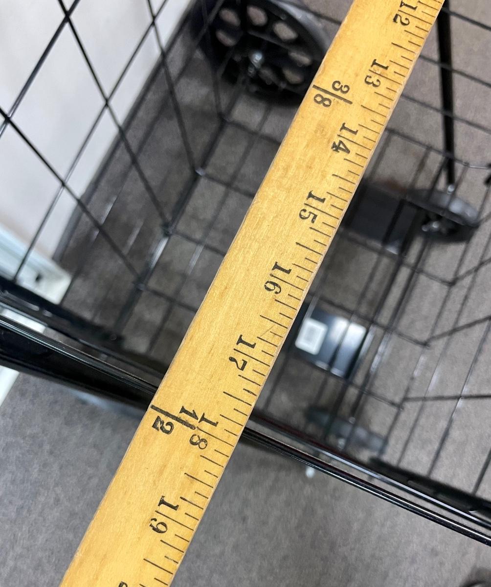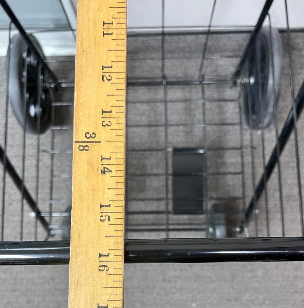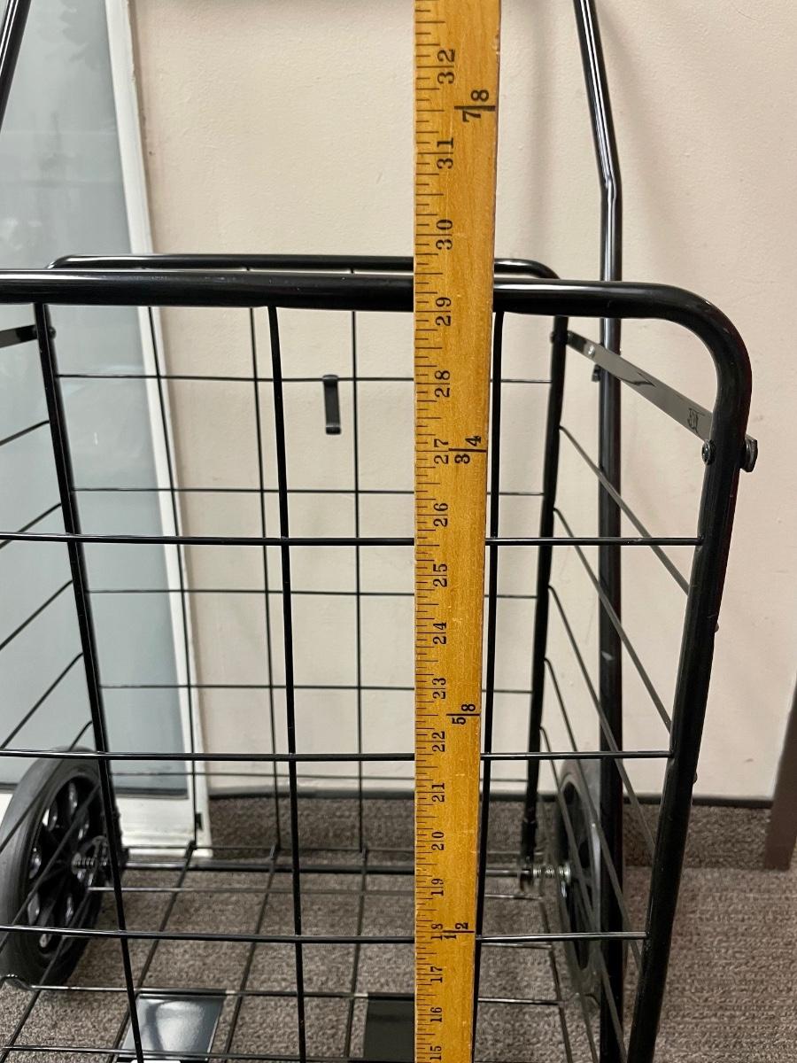 lapsible Metal Shopping Cart with Wheels. Very clean, near new condition. Approx. 40” height at handle. See photos for other dimensions.