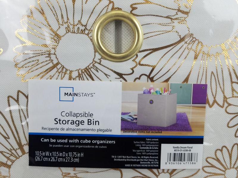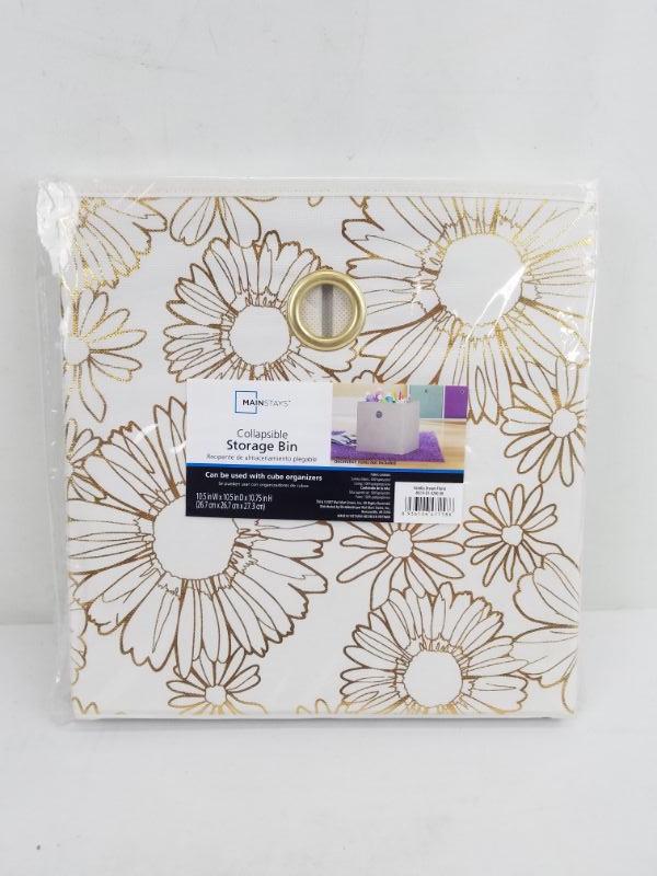 Collapsible Storage Bins 10.5"x10.5"x 10.75" "Vanilla Dream Floral" Cream w/ Gold Floral Qty 2 - New