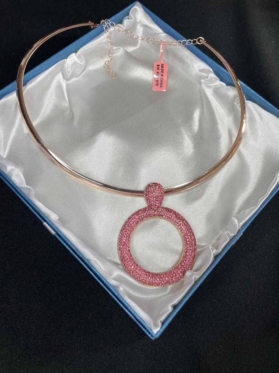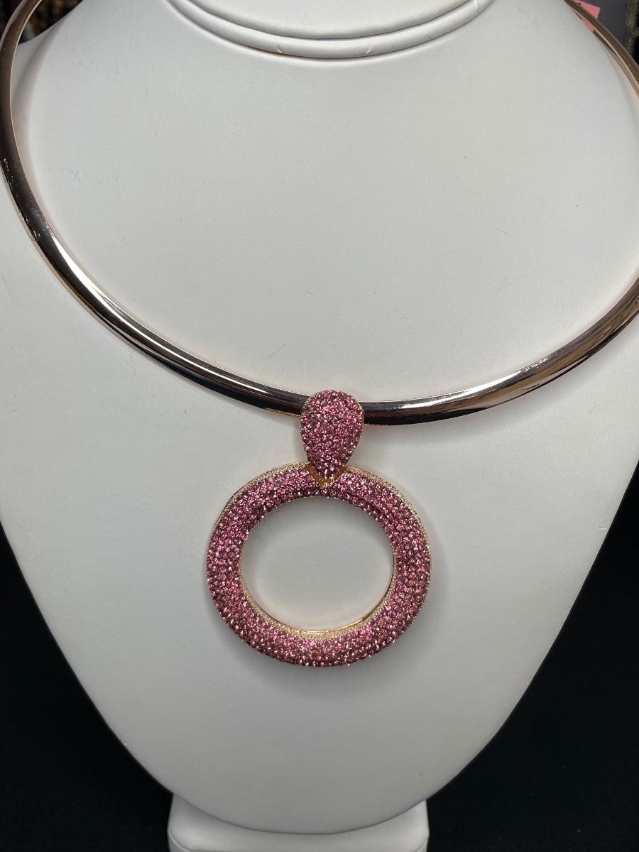 Collar Necklace with Pink Stones Pendant