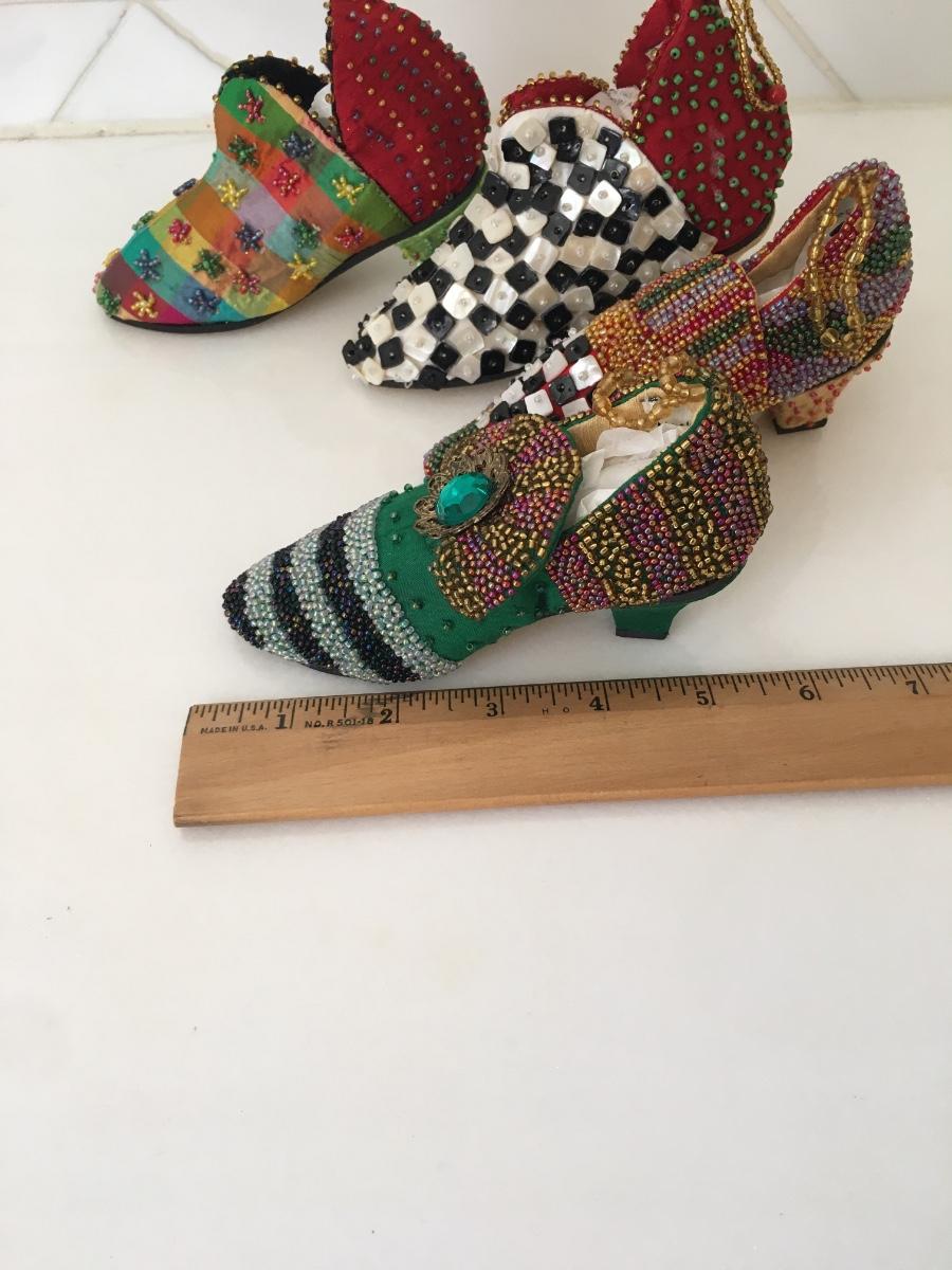 Set of 4 beaded and sequined leather soled shoes all in excellent condition. Great pieces for any collector.