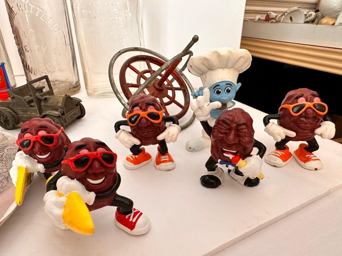 COLLECTIBLE CALIFORNIA RAISIN, SMURF, GLASSWARE LOT