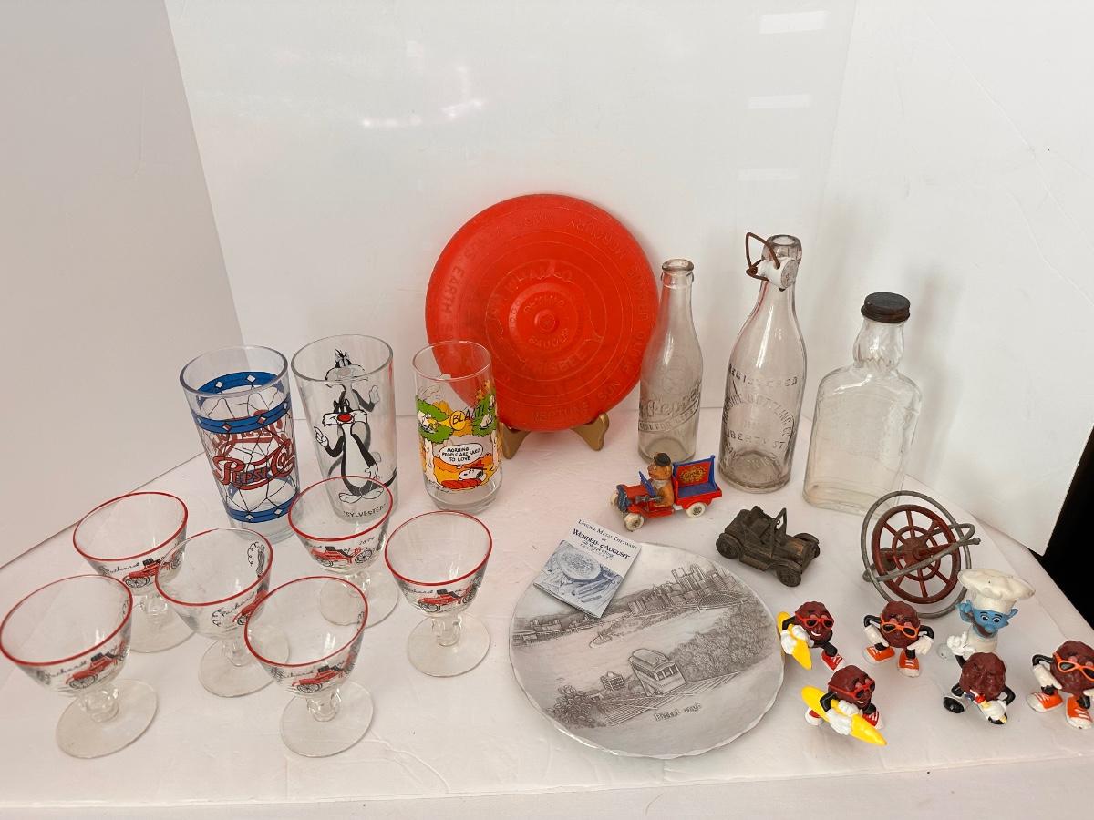 INCLUDES WENDELL AUGUST PEWTER, MUPPETS, BARWARE, SNOOPY, SMURFS, FLYING SAUCER FRISBEE, SYLVESTER, PEPSI COLA AS PICTURED