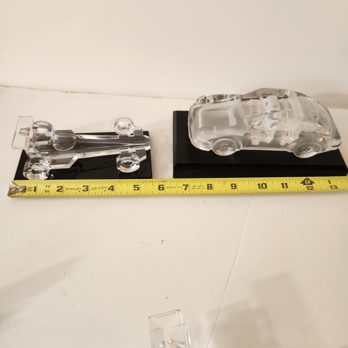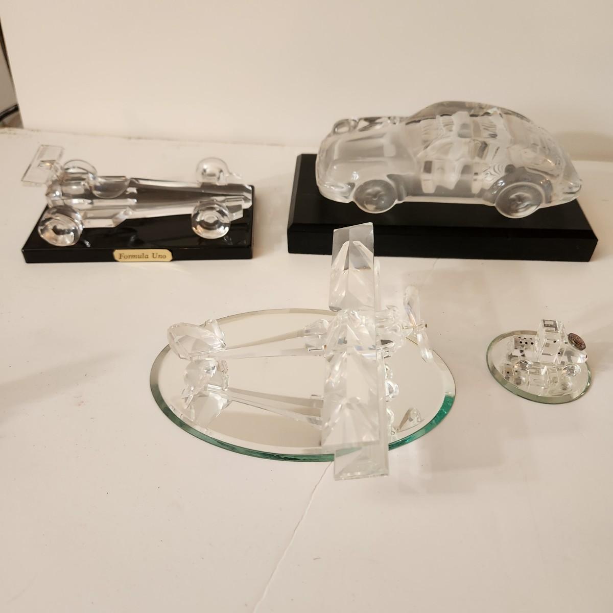 Collectable Lot Crystal Glass Cars Plane Fornula Uno One Race Car , Frosted Glass Porche 911 , Biplane w Spinning Prop