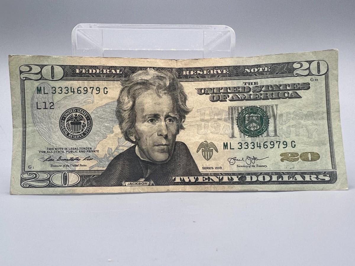 Collectible 20 Dollar Bill with Interesting Sequential Serial Number Triple Digits, there are no rips or tears to the bill and is in good collectible condition. Has been circulated and folded, check pictures for more details and for sizing.