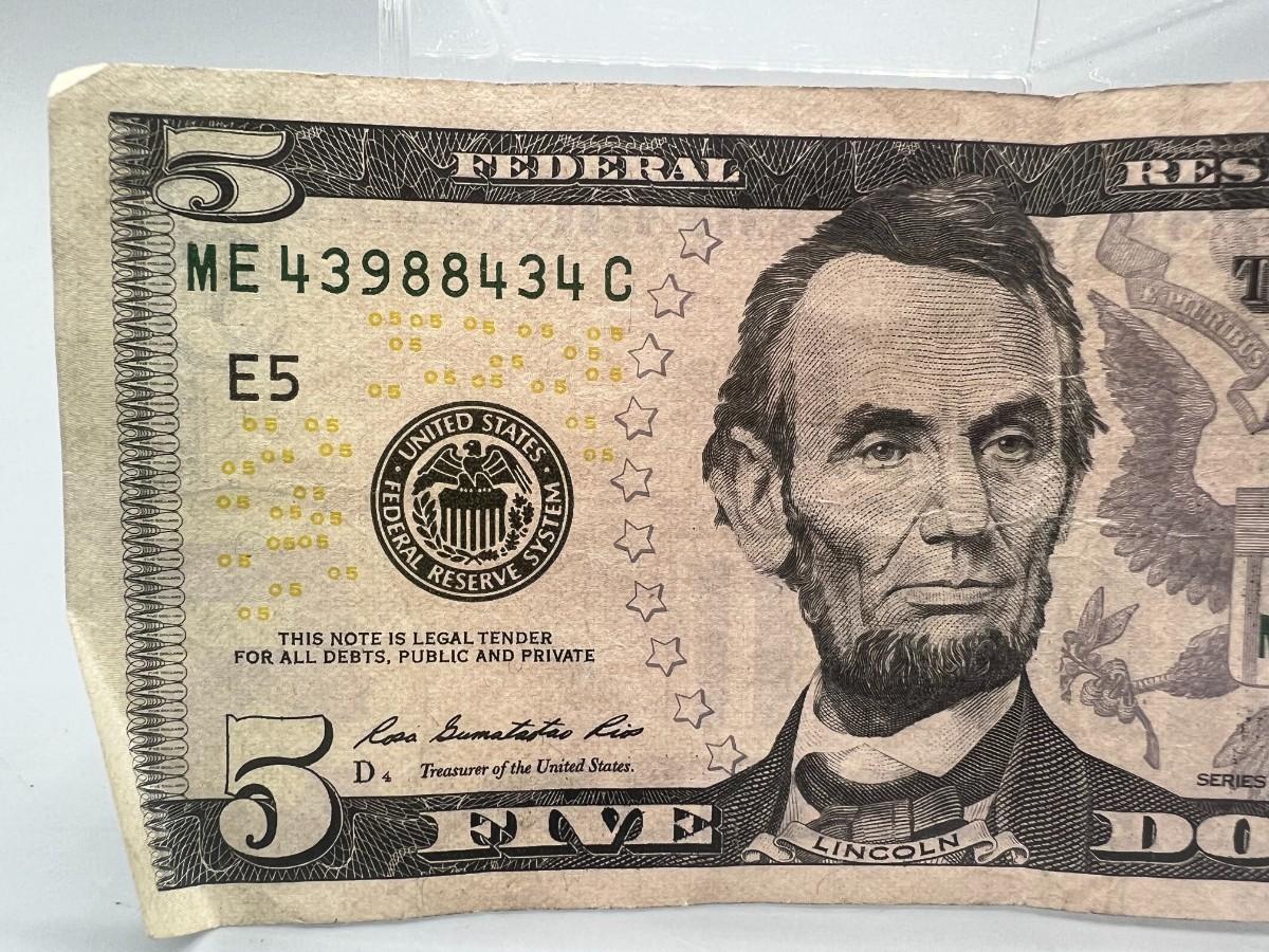 Collectible $5 Dollar Bill with Interesting Sequential Bookend Serial Number