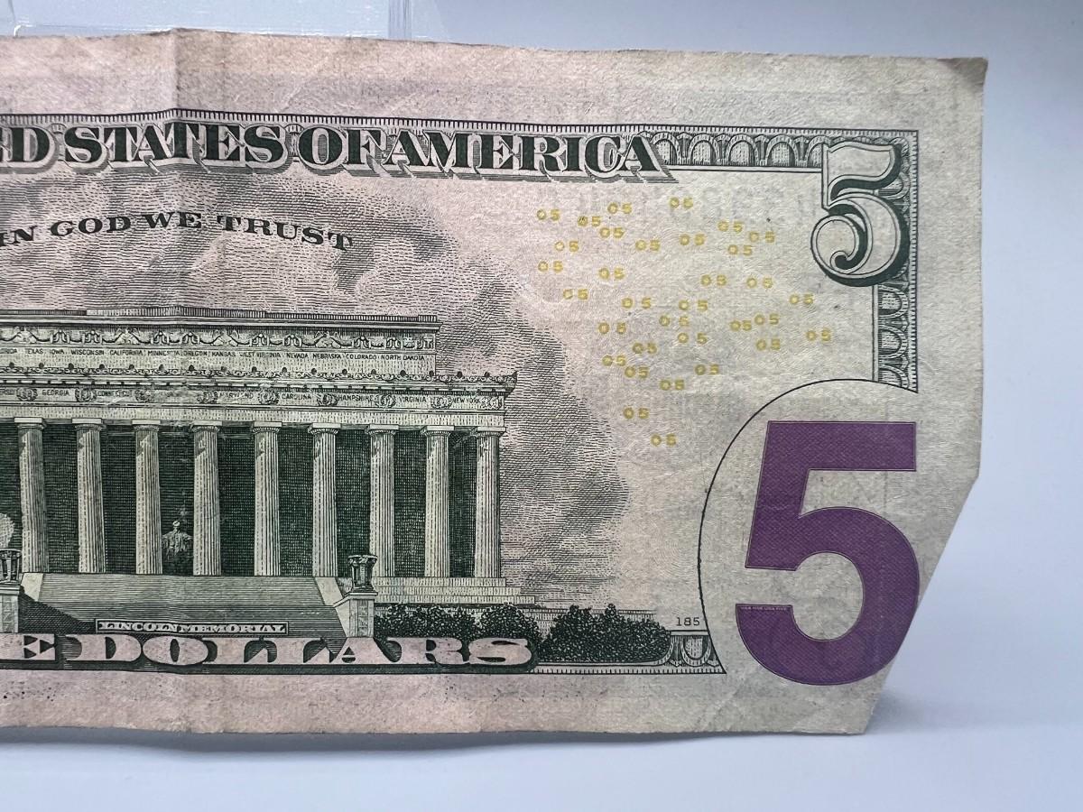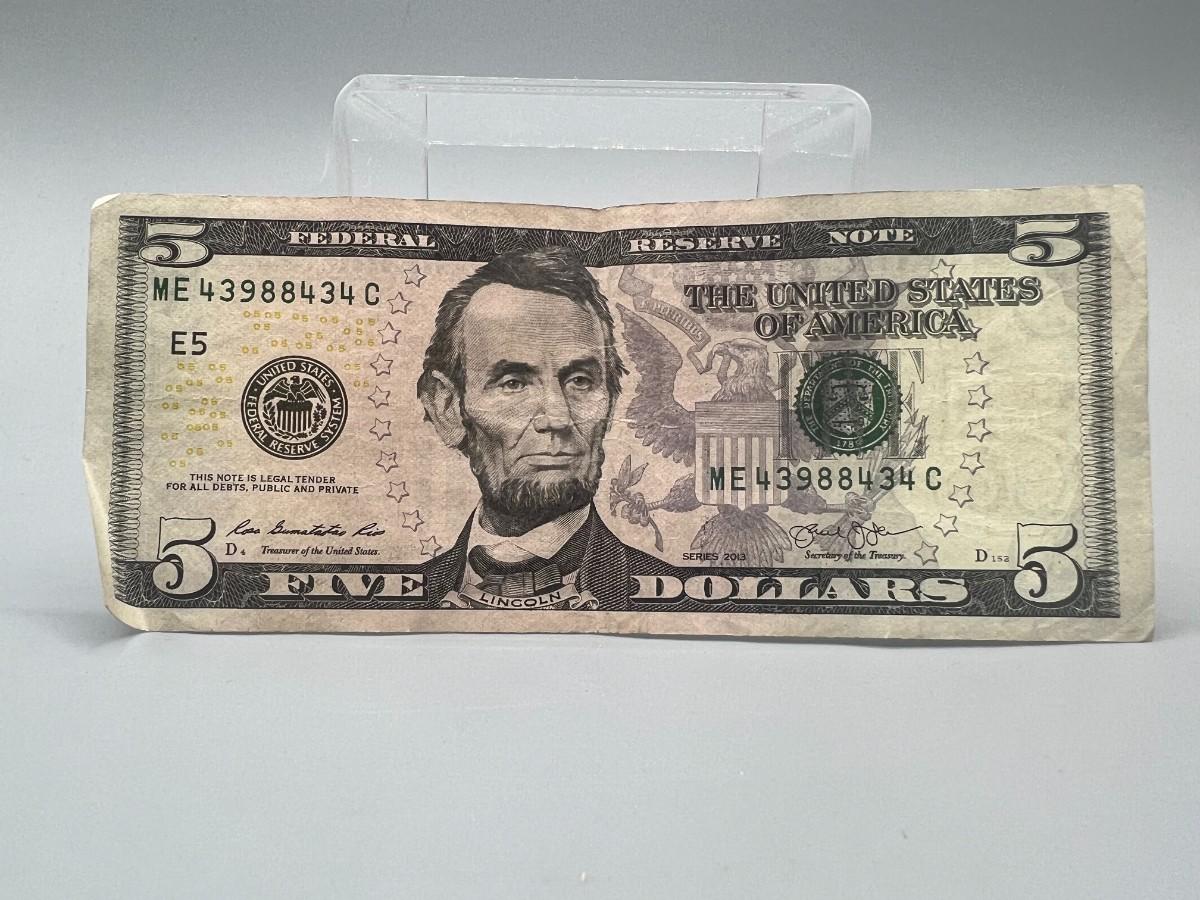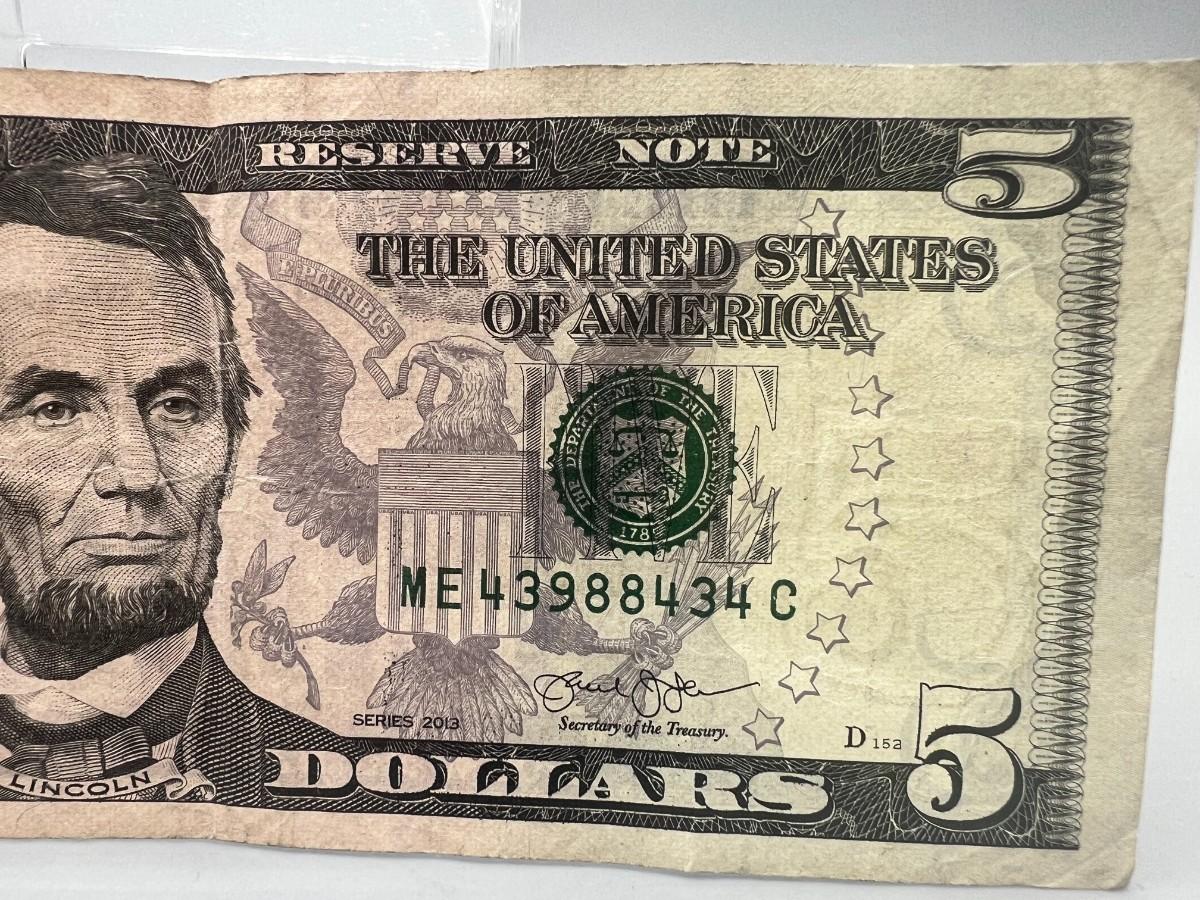 Collectible $5 Dollar Bill with Interesting Sequential Bookend Serial Number US Currency Money