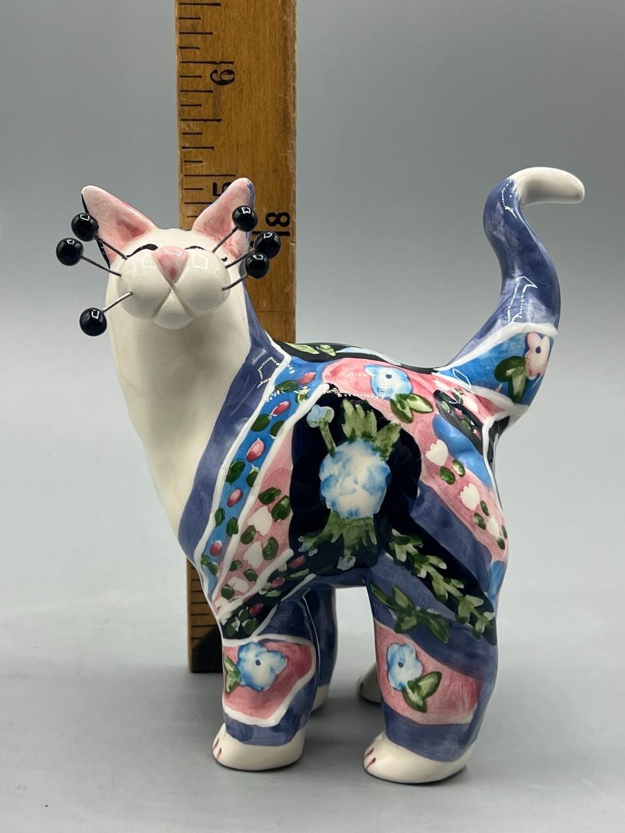 Collectible Annaco Creations Amy Lacombe Colorful Ceramic Cat Figurine, there are no significant cracks or chips to the figurine and is in good collectible condition. Check pictures for more details and for sizing.