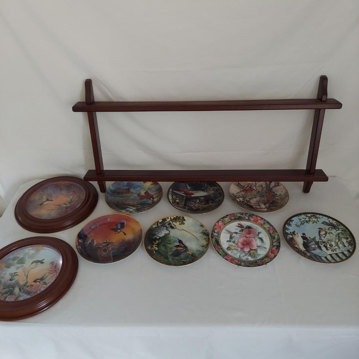 Lot includes nine 8" collectible plates and a wooden wall hanging plate display that measures 32.5" x 2.5" x 16"H. Includes The Franklin Mint and The Bradford Exchange. The easel style plate stands are not included in the lot. Shipping available.