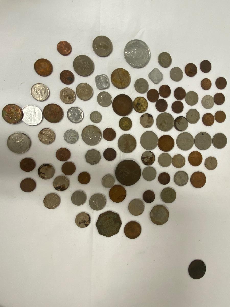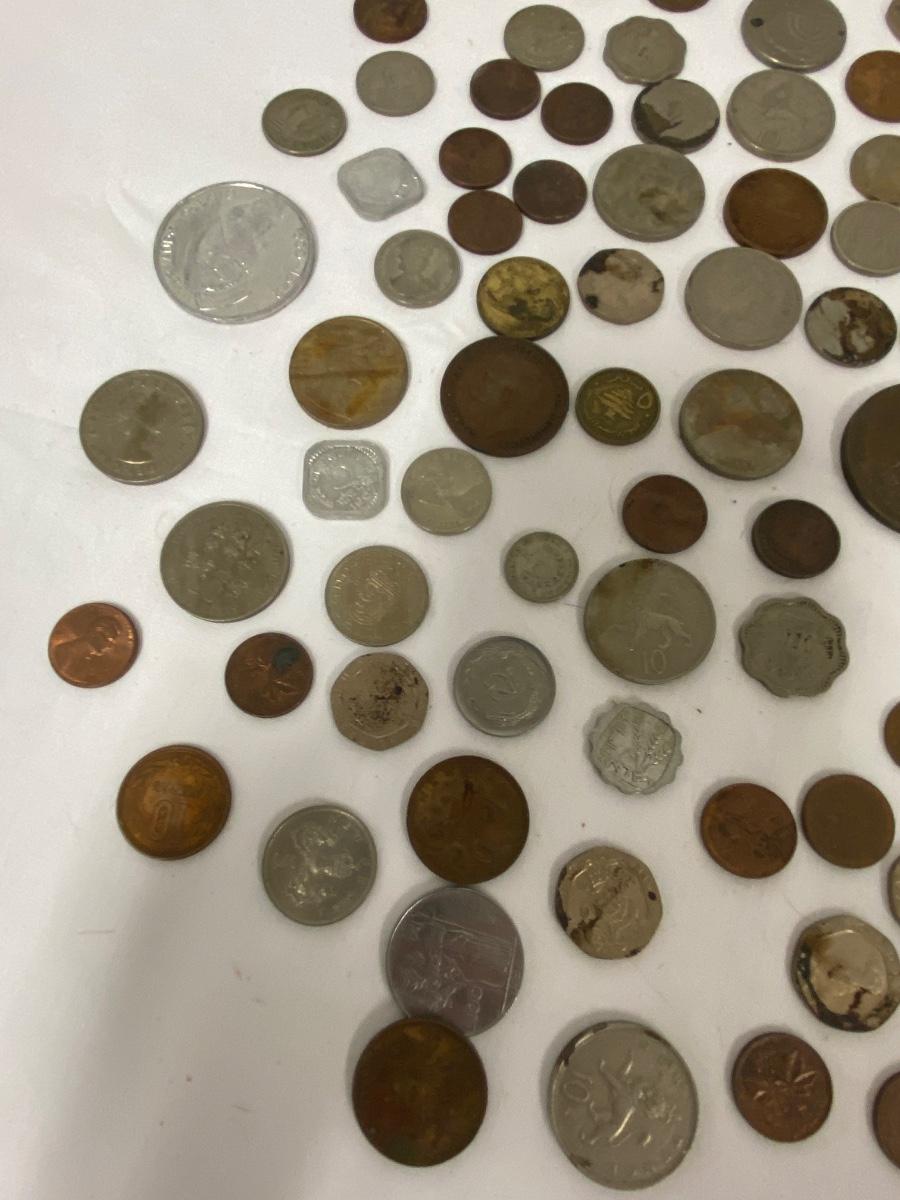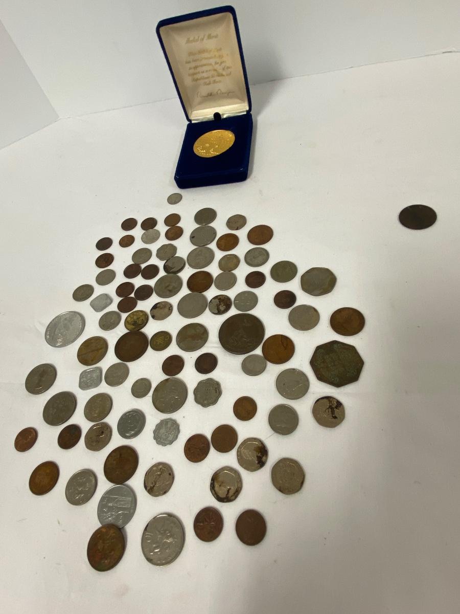 Collectible Coin Lot, misc. foreign coins, Ronald Reagan medal of merit coin as pictured