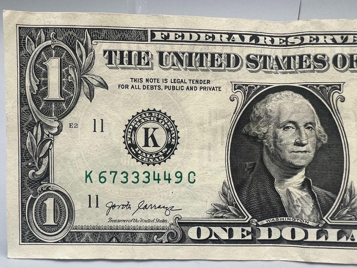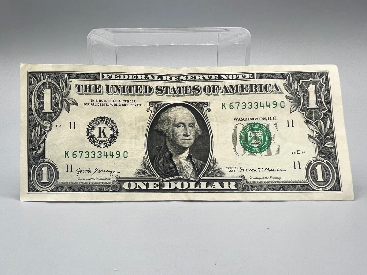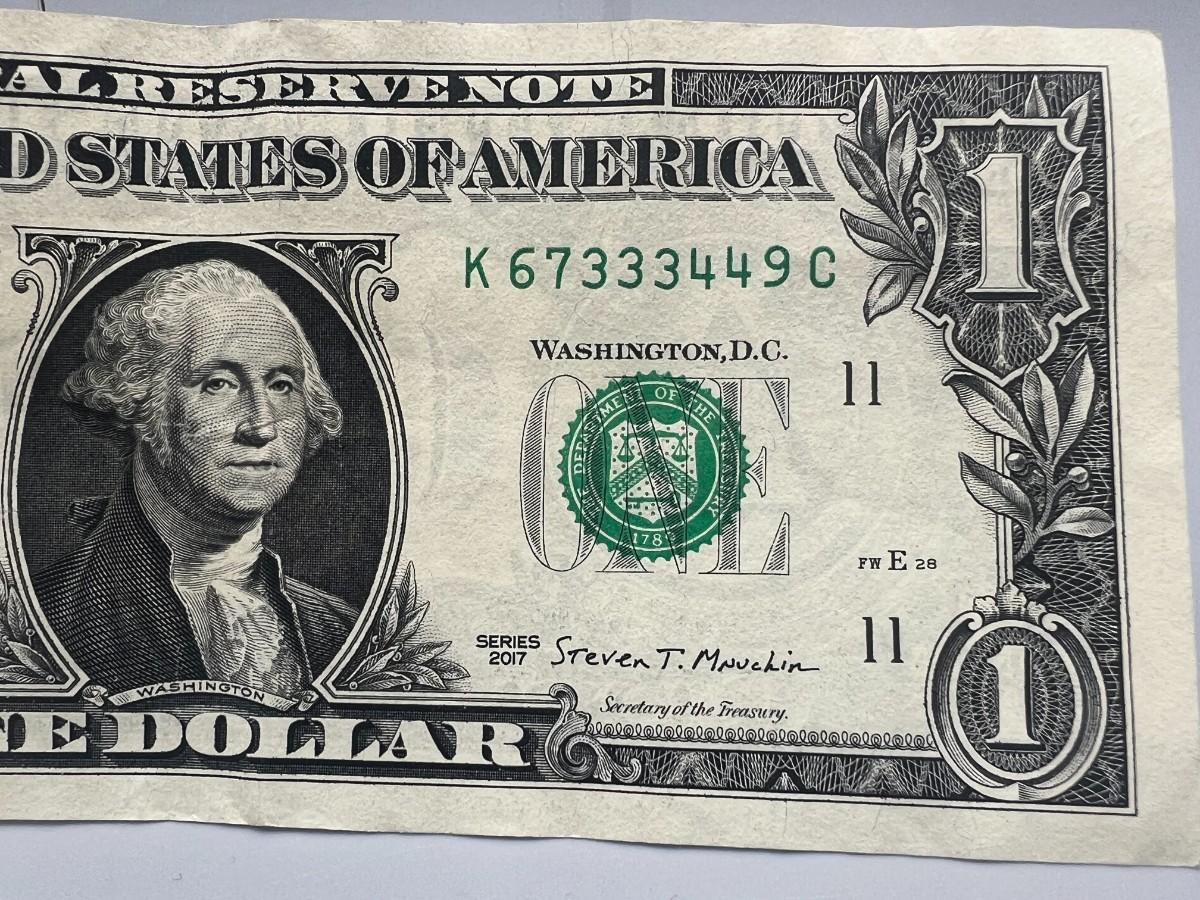 Collectible Dollar Bill with Interesting Sequential Serial Number Trinary Triple & Pair of Digits