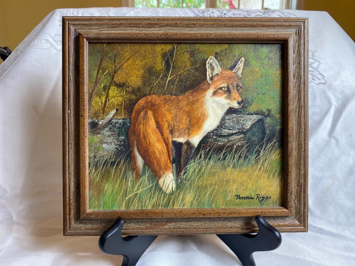 Vintage framed 10” x 11 1/4” local fox oil painting, artist from Roanoke VA