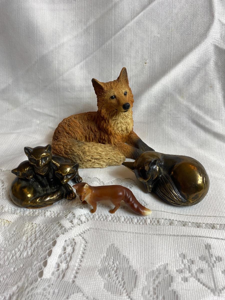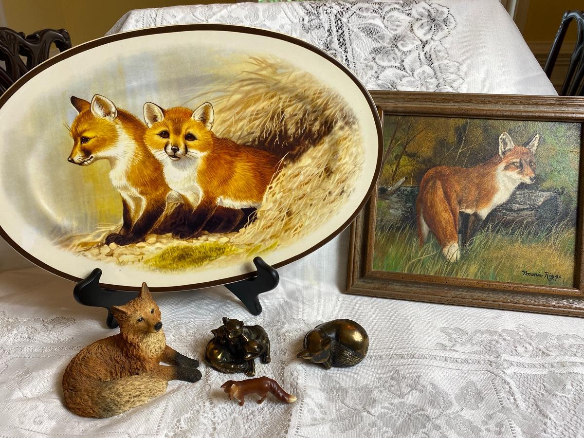 Collectible Fox Decor Lot - Figurines, Oil Painting, Plate