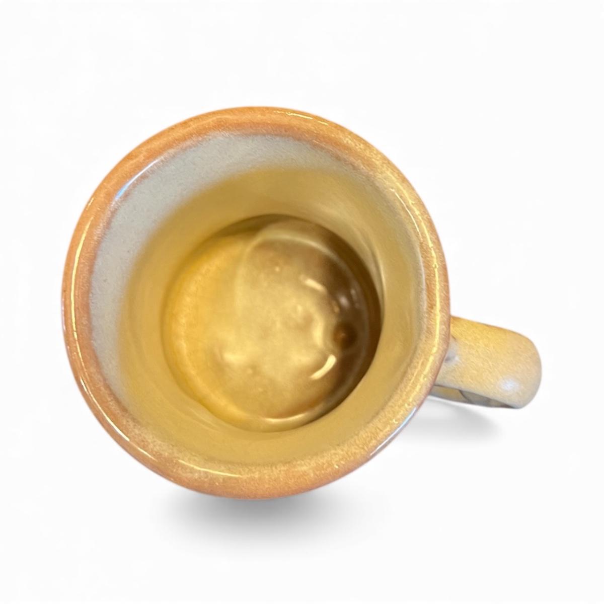 Classic Frankoma stoneware mug featuring the distinctive C9 “trigger finger” handle. A charming vintage piece for collectors or anyone who appreciates timeless Oklahoma-made pottery.