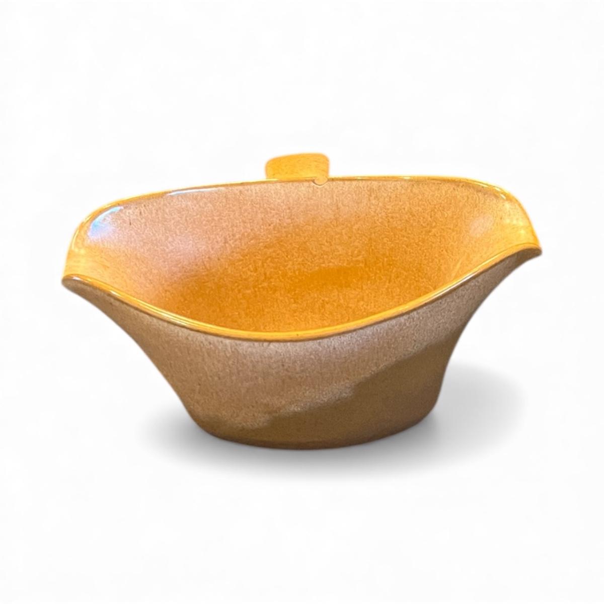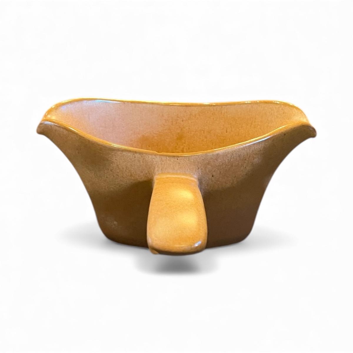 Collectible Frankoma Double Spout Gravy Bowl – Plainsman Brown Glaze (with small chip)