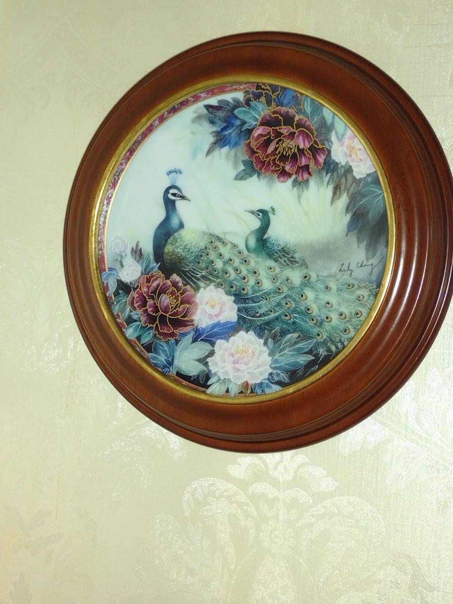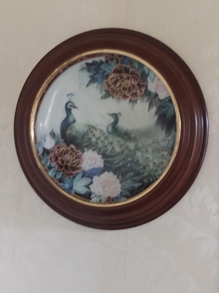 Collectible Gardens of Paradise Plate in Wooden Hanger- Approx 9 3/4" in Diameter