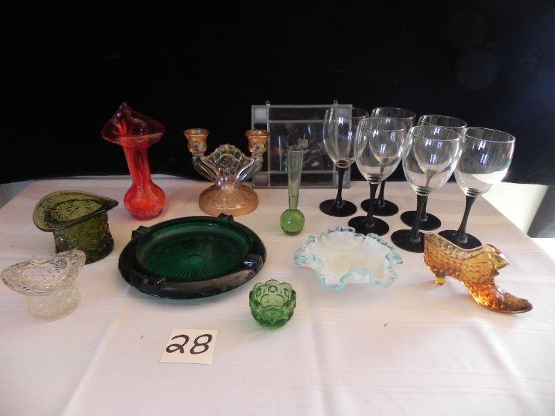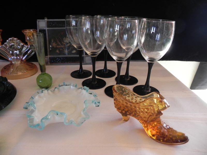 Fenton, Vases, stain glass, Depression glass , Wine glasses stems are a purple/red in color when held to light