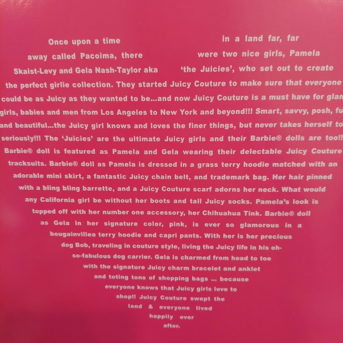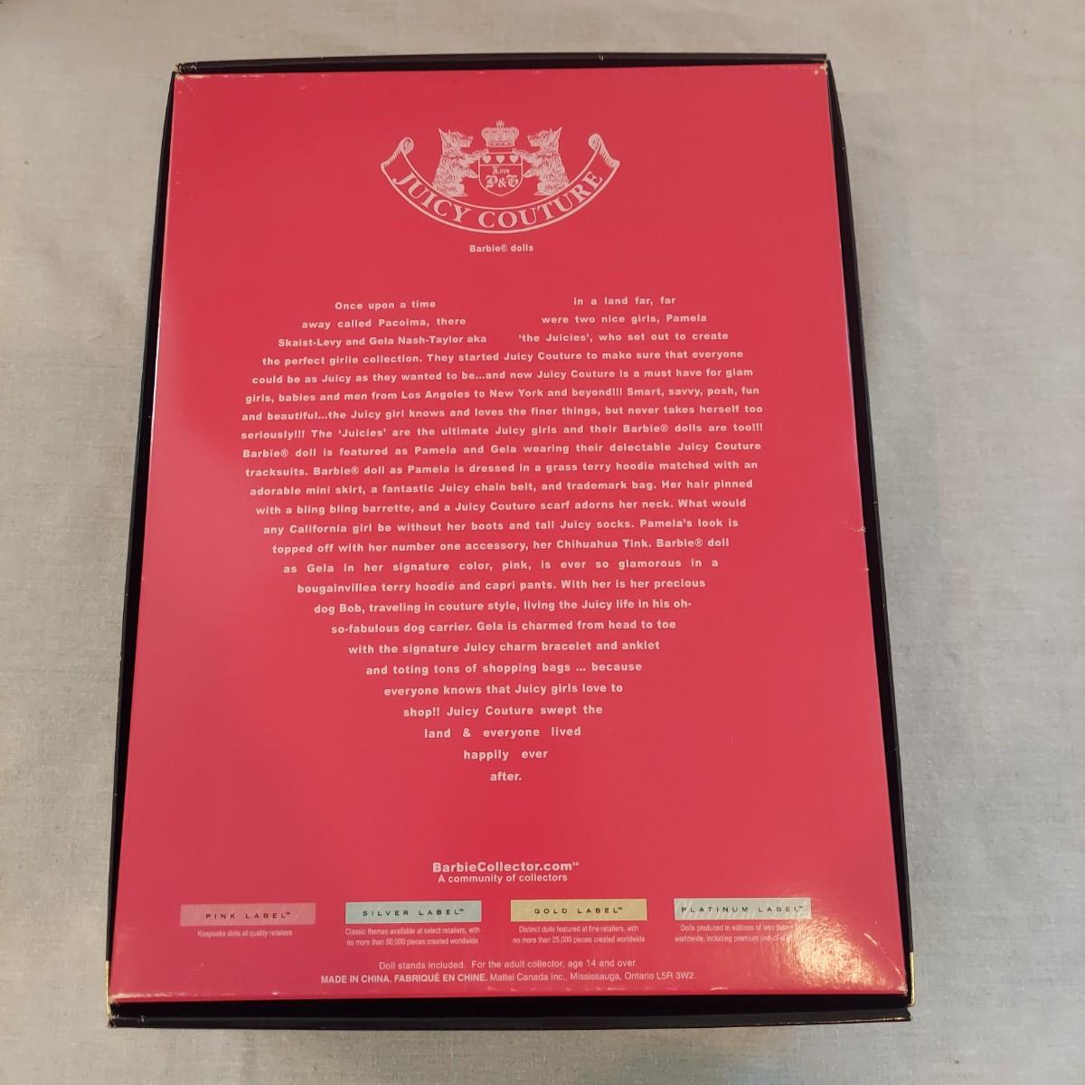 Gold Label Juicy Couture collector set of Barbies. Released in 2004, contains doll stands and a certificate of authenticity. They appear to have silkstone bodies but it's not stated on the box. Box measures 10" x 3" x 13"H. Shipping available