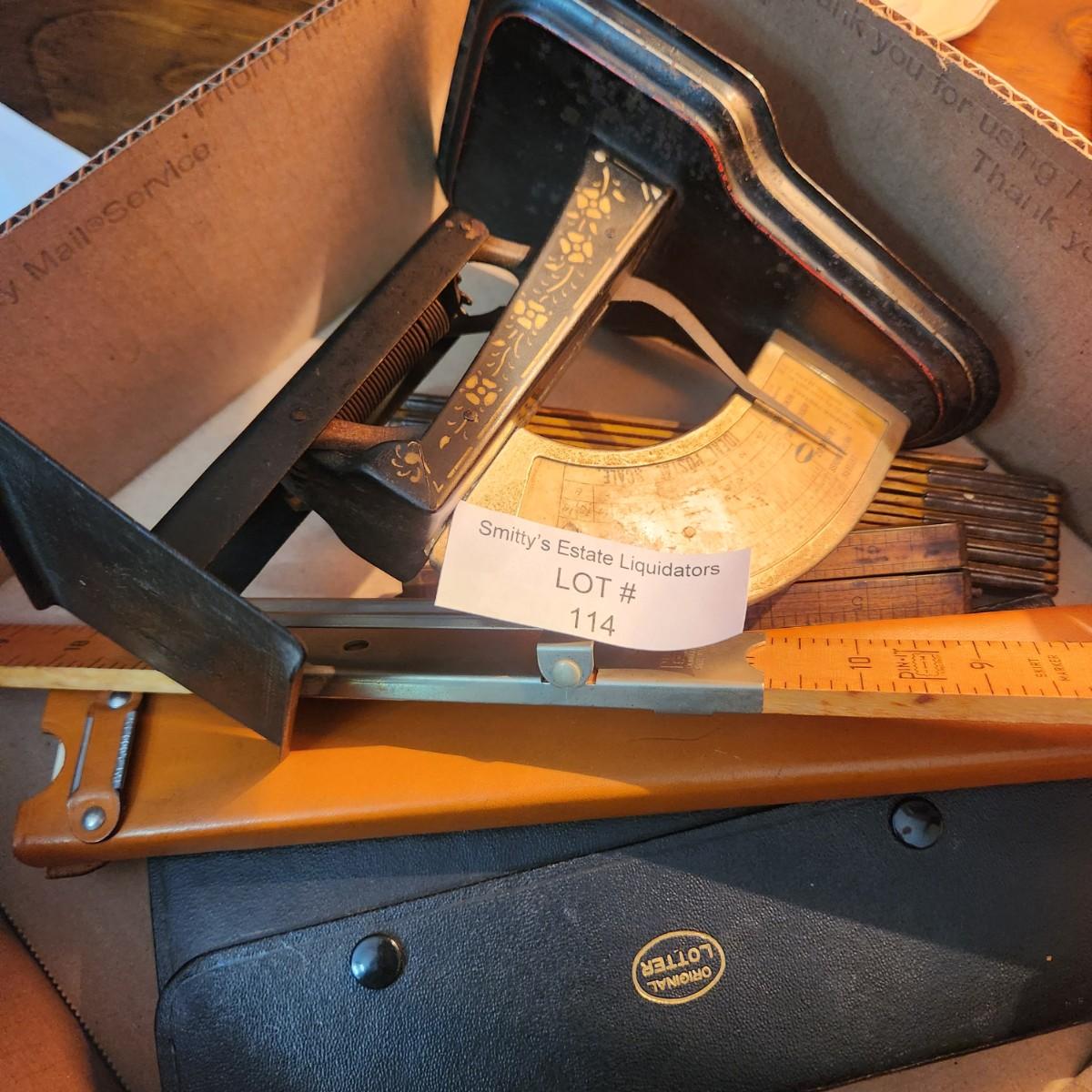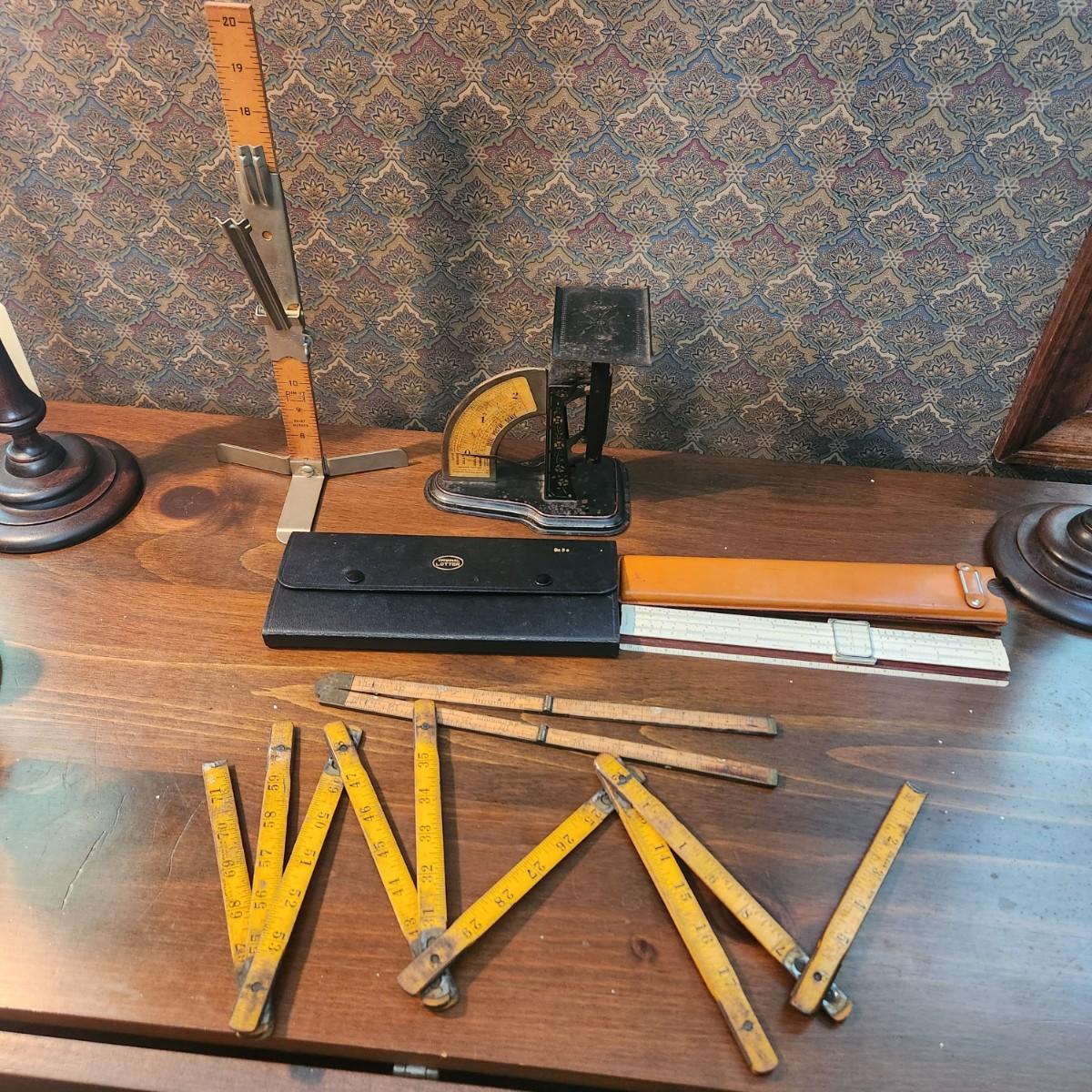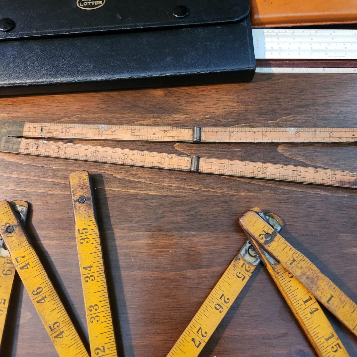 Collectible lot Ideal Postal Scale Slide Rule w case Folding Rulers , Vintage Nobema Drawing Instruments