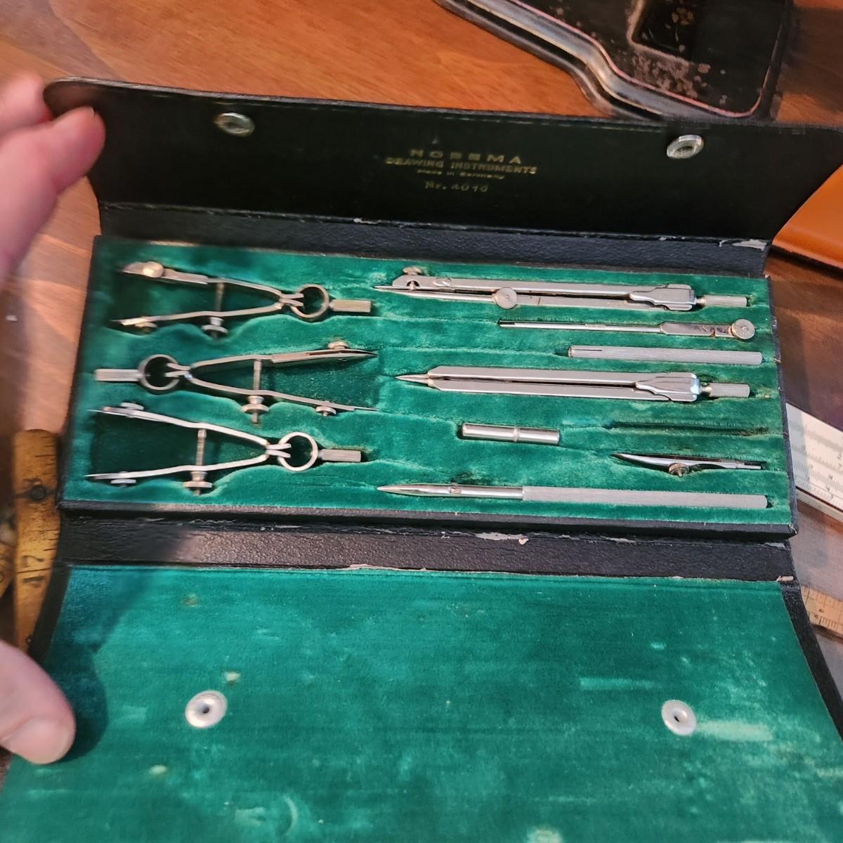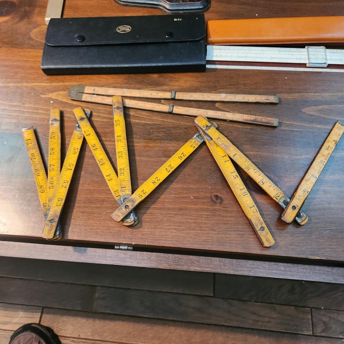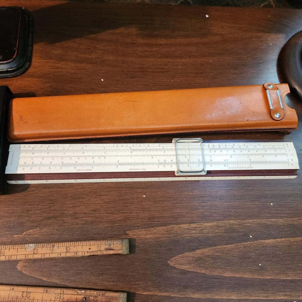 Collectible lot Ideal Postal Scale Slide Rule w case Folding Rulers , Vintage Nobema Drawing Instruments
