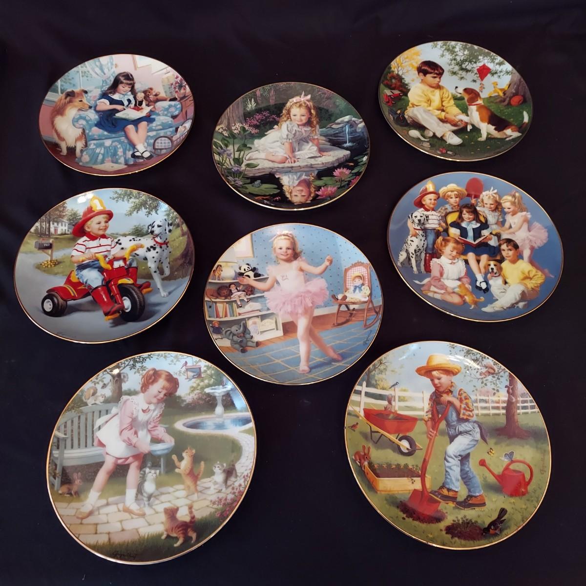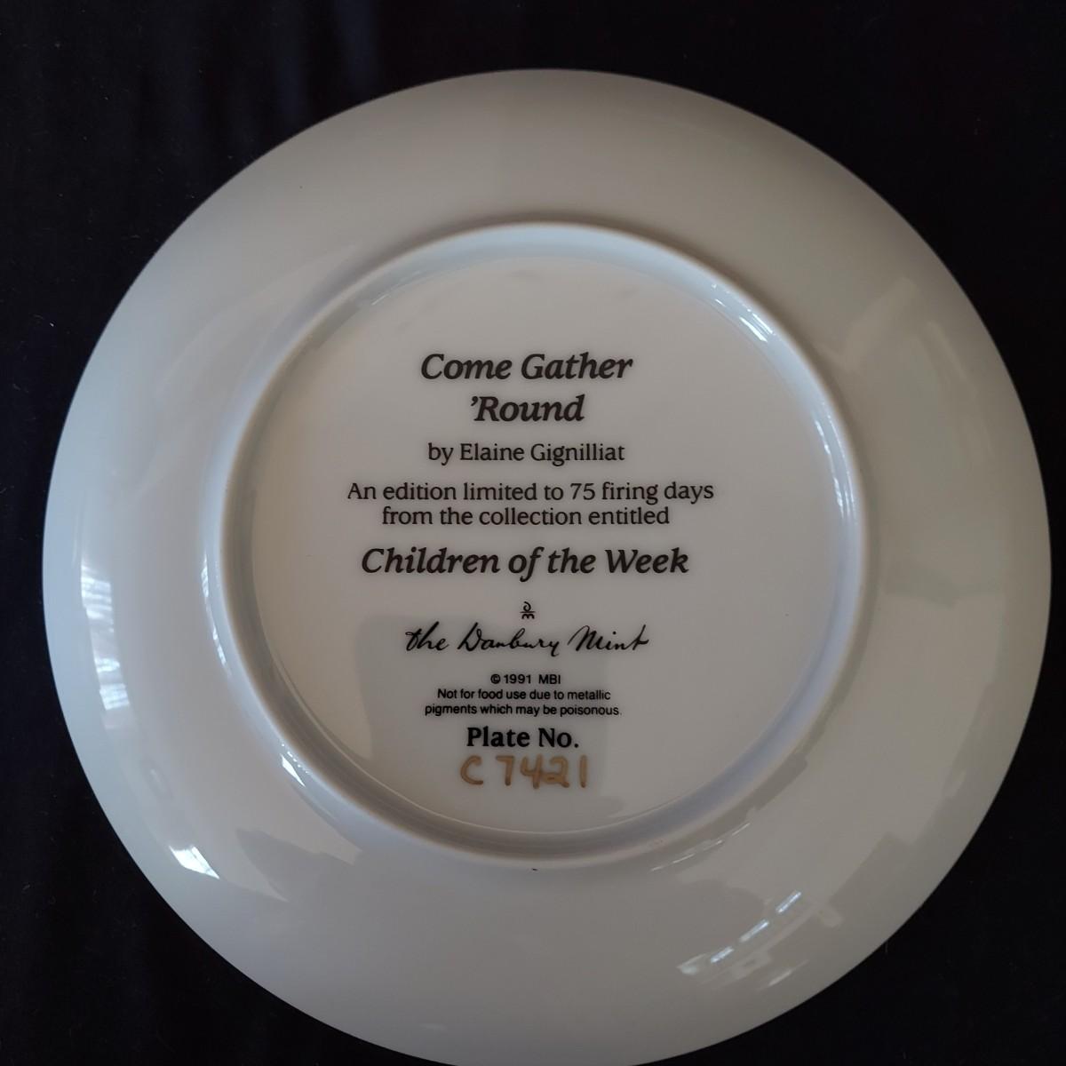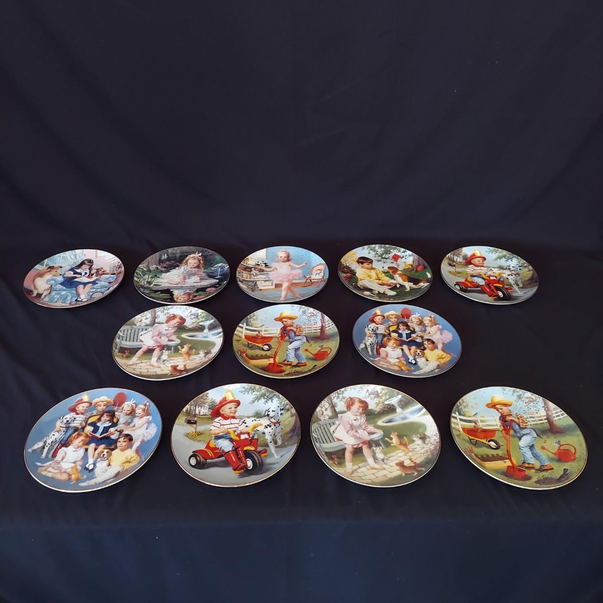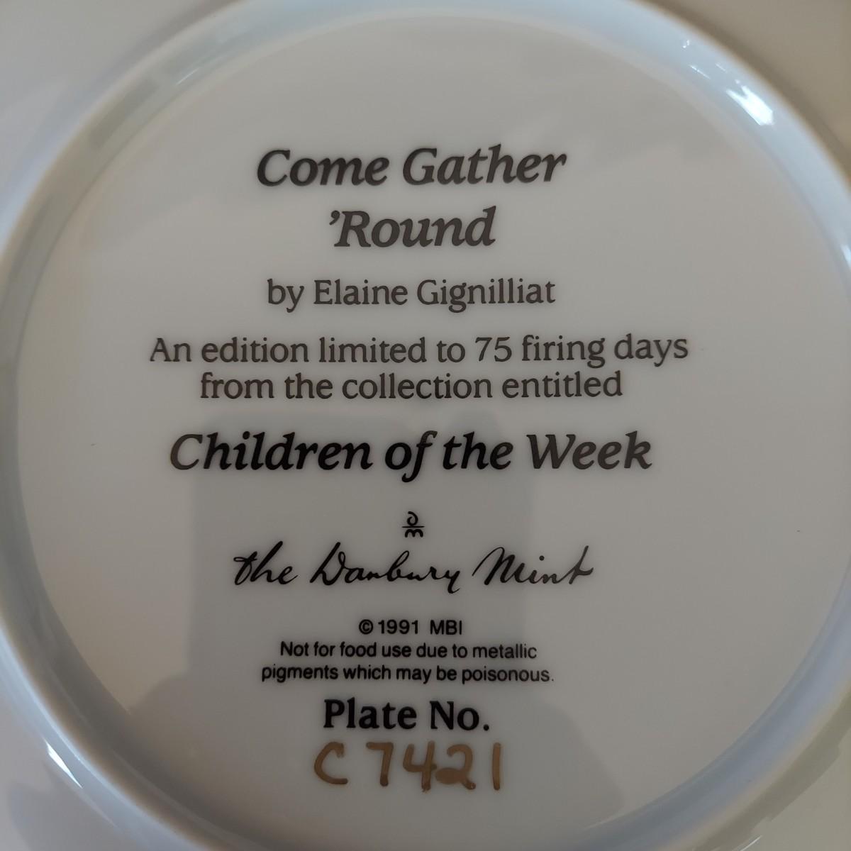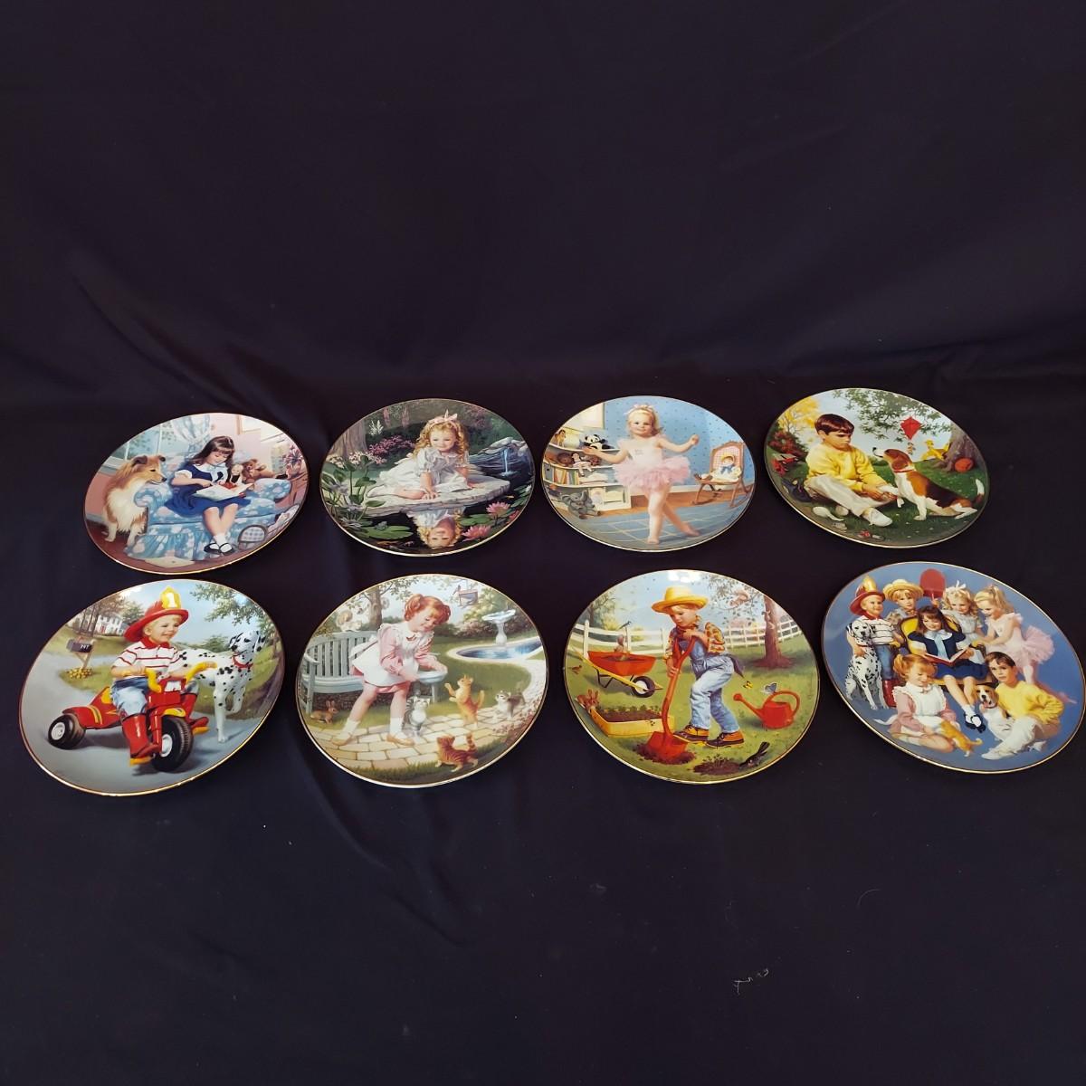 Lot of 12 plates from Children of the Week series by The Danbury Mint 1991. There are plates for each day of the week, Sunday-Saturday, plus the Come Gather Round plate featuring all of the COTW kids. There are four additional plates that are duplicates. Plates measure 8". Shipping available. Shipping can be costly. We suggest contacting our preferred local shipping provider, Postage Express, with dimensions and getting an estimate before bidding: (828) 670-5501 or postageexpress@yahoo.com.