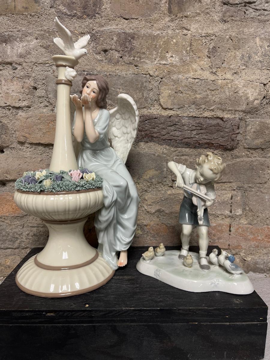 Grandeur Noel Angel porcelain figurine and Metzler & Ortloff Boy Playing the Violin