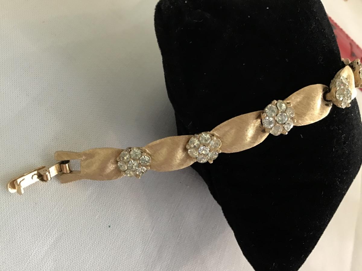 Collectible. Ribbon Birthday Series April Rhinestone Crown Trifari Vintage Bracelet