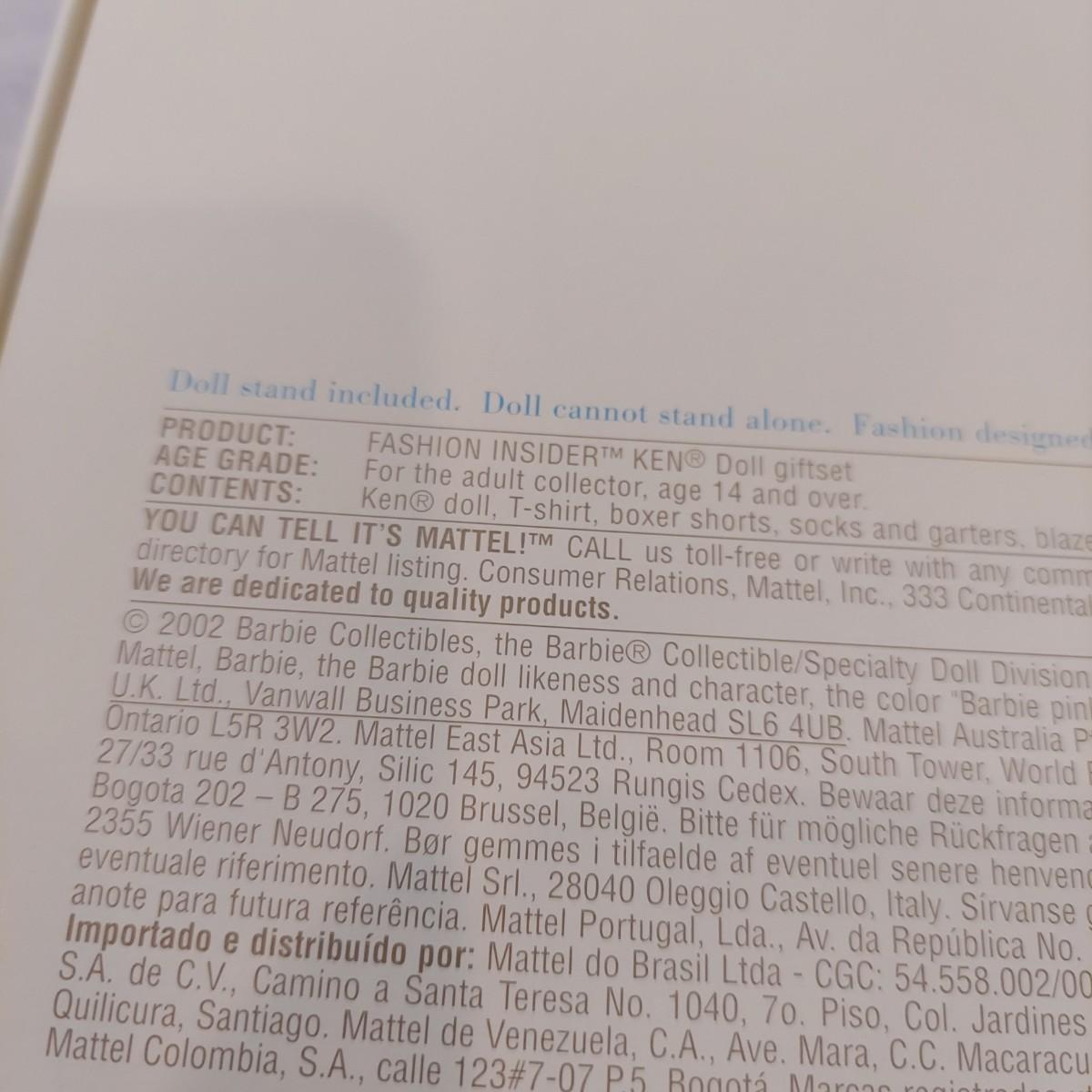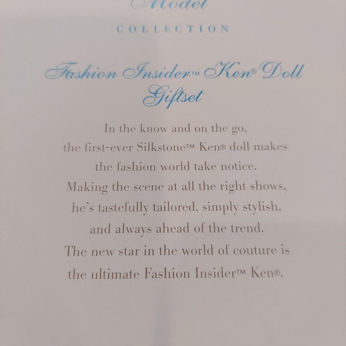 Limited Edition Fashion Insider Ken Doll Giftset from the Barbie Fashion Model collection. Made in 2002, this is the first Ken with a silkstone body. Box measures 12.5" x 2.5" x 14"H. Shipping available