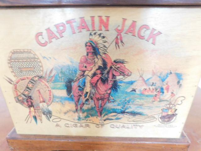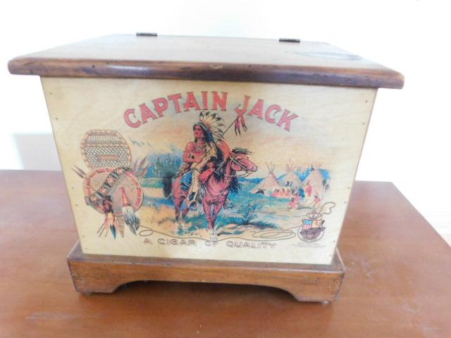 Collectible Solid Wood Captain Jack Native American Theme Hinged Lidded Box