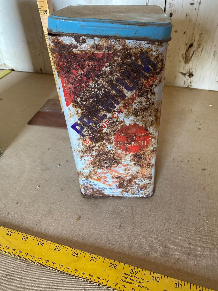 To collectible metal tins the cracker tin does need some love to be cleaned up