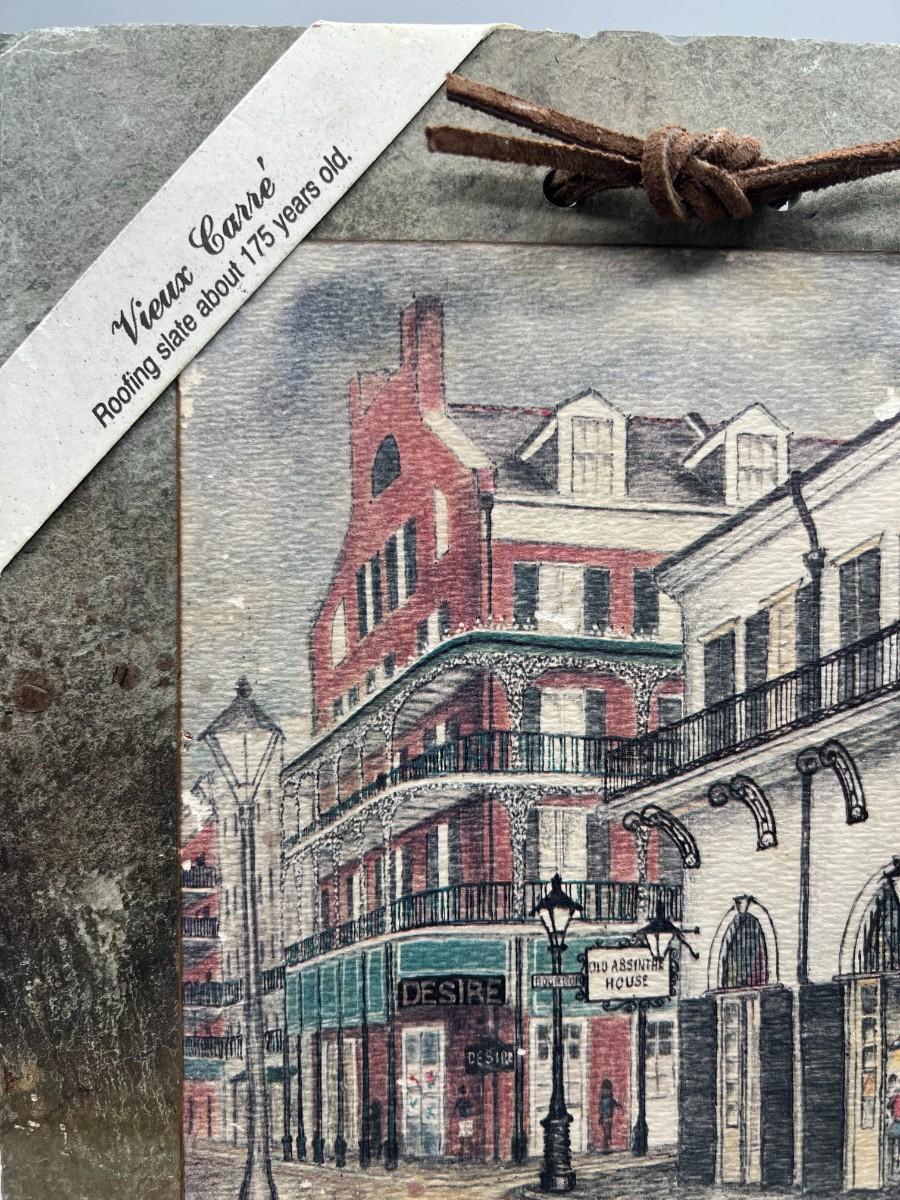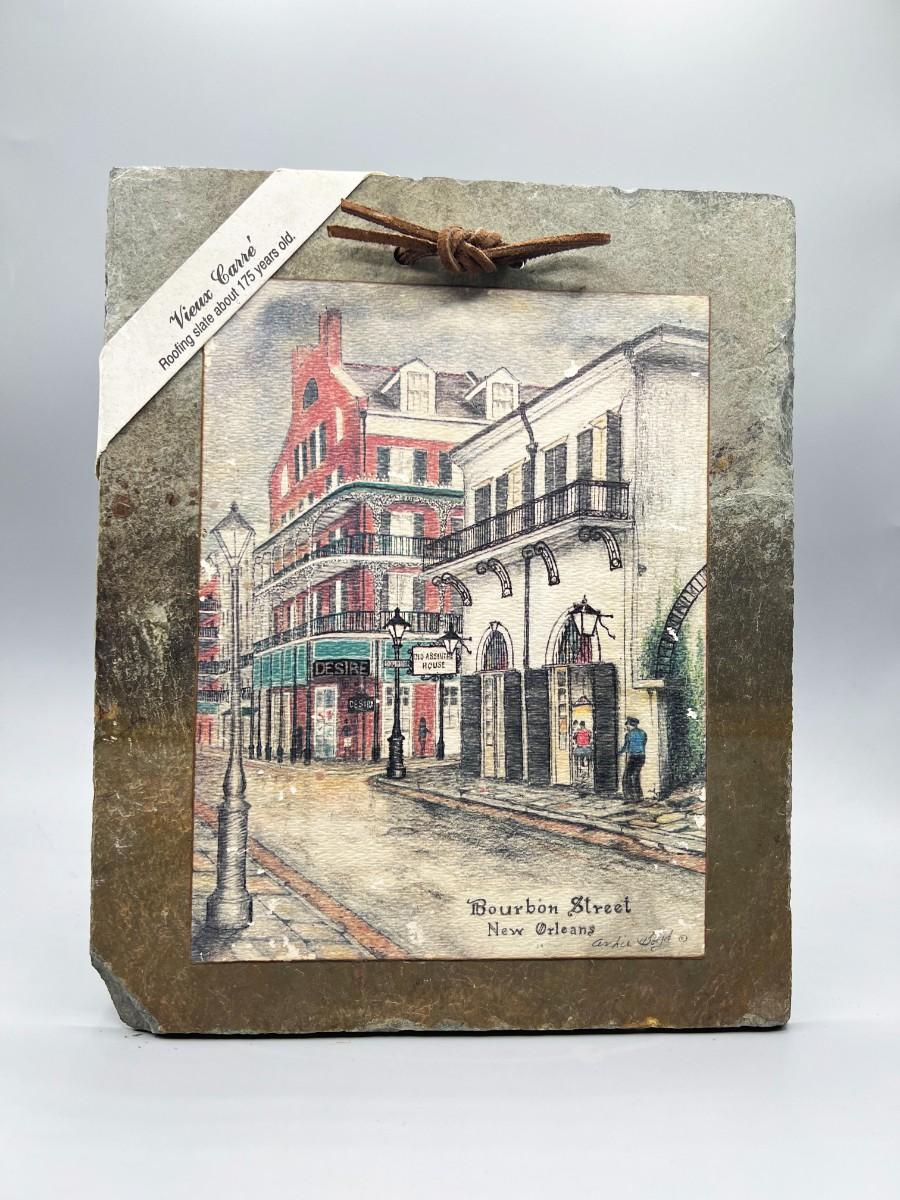 Collectible Vieux Carre New Orleans French Quarter Roofing Slate with Illustration of Bourbon Street