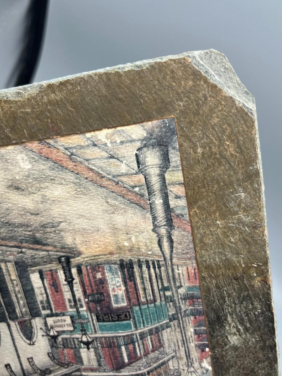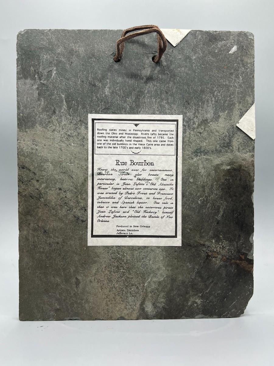 Collectible Vieux Carre New Orleans French Quarter Roofing Slate with Illustration of Bourbon Street, there is a crack on one of the corners of the slate, but there is no other significant damage and is in good displayable condition. Check pictures for more details and for sizing.