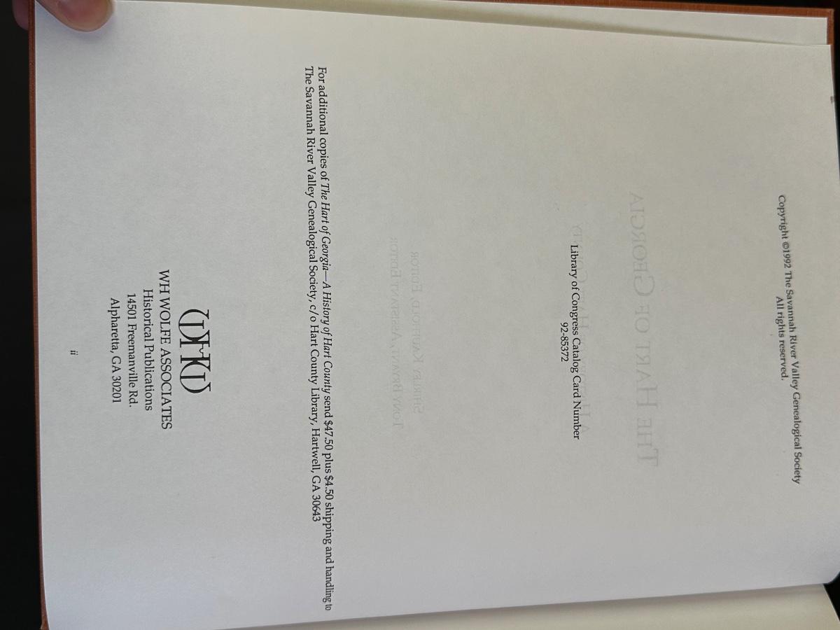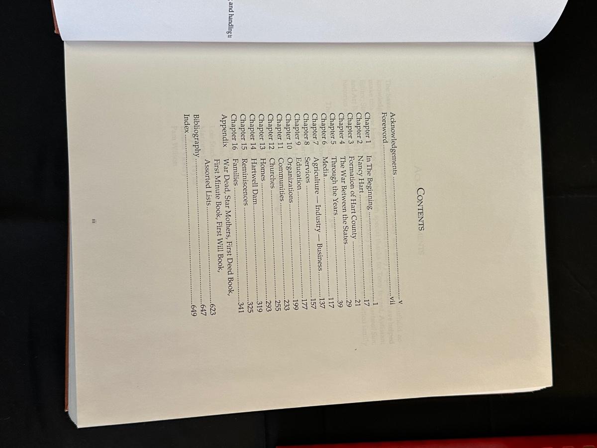 A history book about Hart County and a recipe book. Also include plates from 1953 depicting Revolutionary War Heroine Nancy Hart. The book does have handwriting on the entry page.