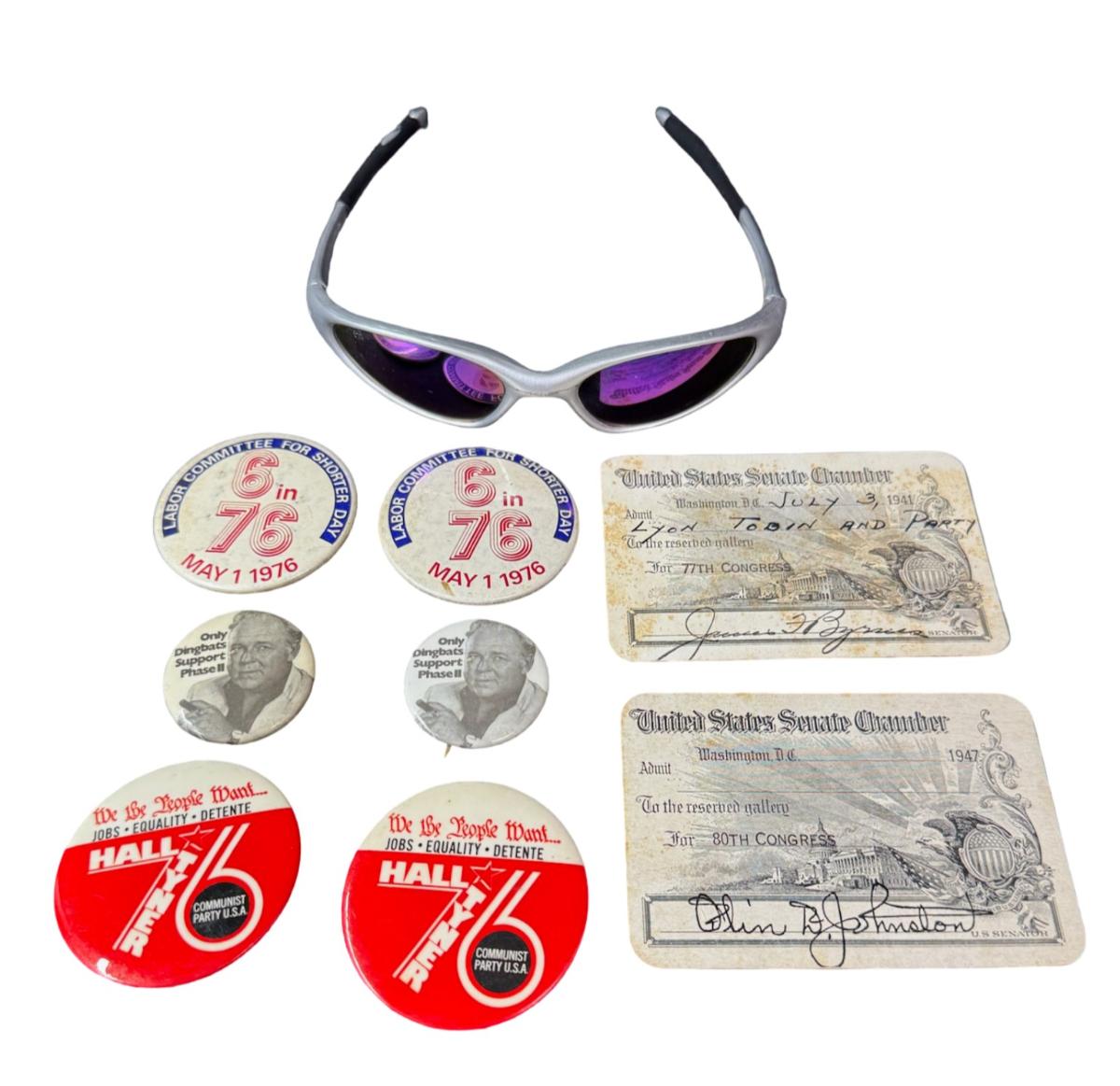 Includes Communist Party pins, political pins, Oakley sunglasses, and more. [LI]