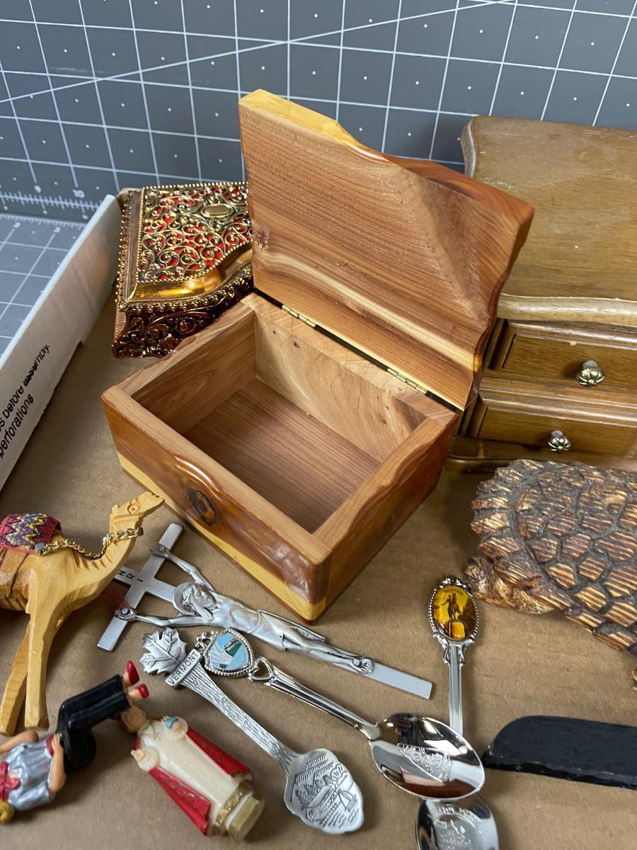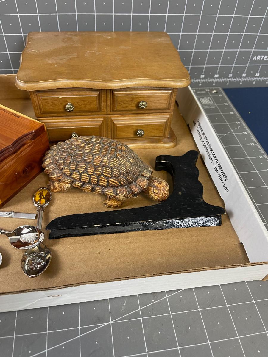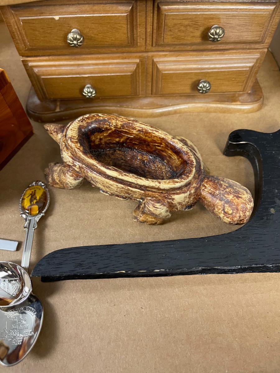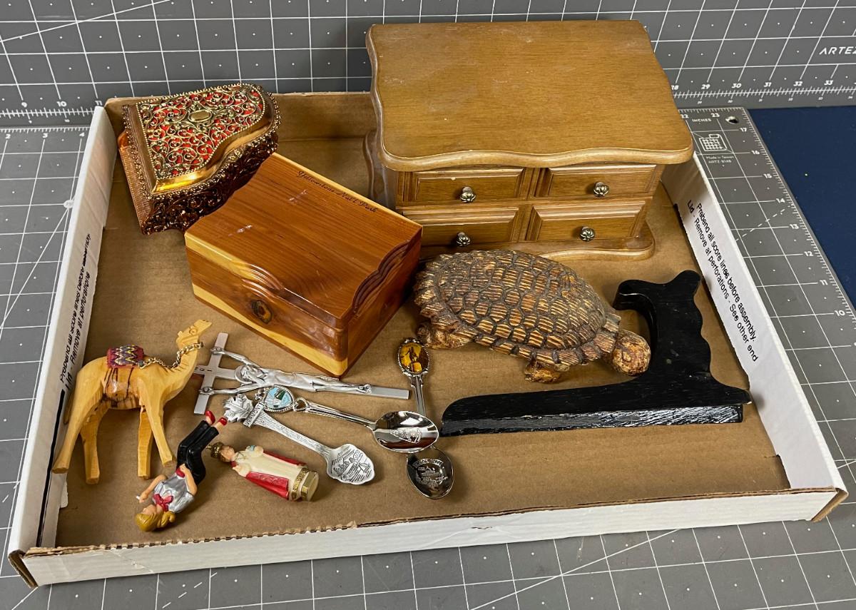 Collectibles: Boxes, Spoons, Turtle (wood)